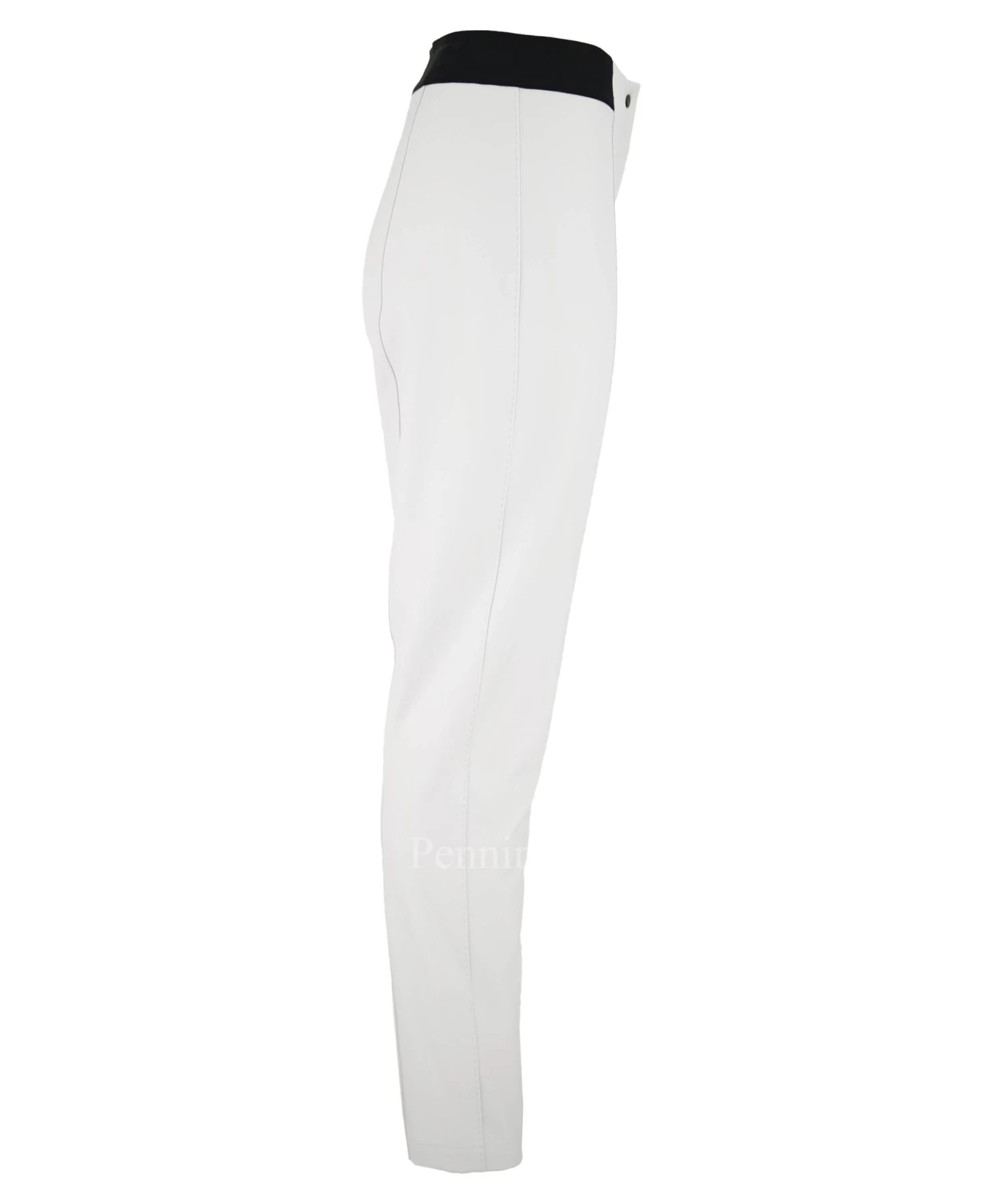 Een broek van Annette Görtz in een lichtgrijze kleur. In de taille is vanaf de zijkanten en de achterkant een zwarte elastieken band. In het midden van de pijpen is over de gehele lengte een decoratieve stiknaad. Deze broek mag op 30 graden worden gewassen.