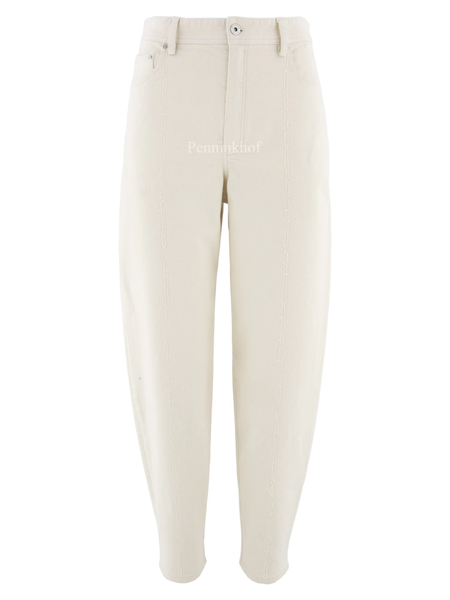Een jeans van Annette Görtz in de kleur beige. De jeans is in een 5 pocket model. Over het midden van de pijpen is een decoratieve naad. Deze jeans mag op 30 graden worden gewassen.