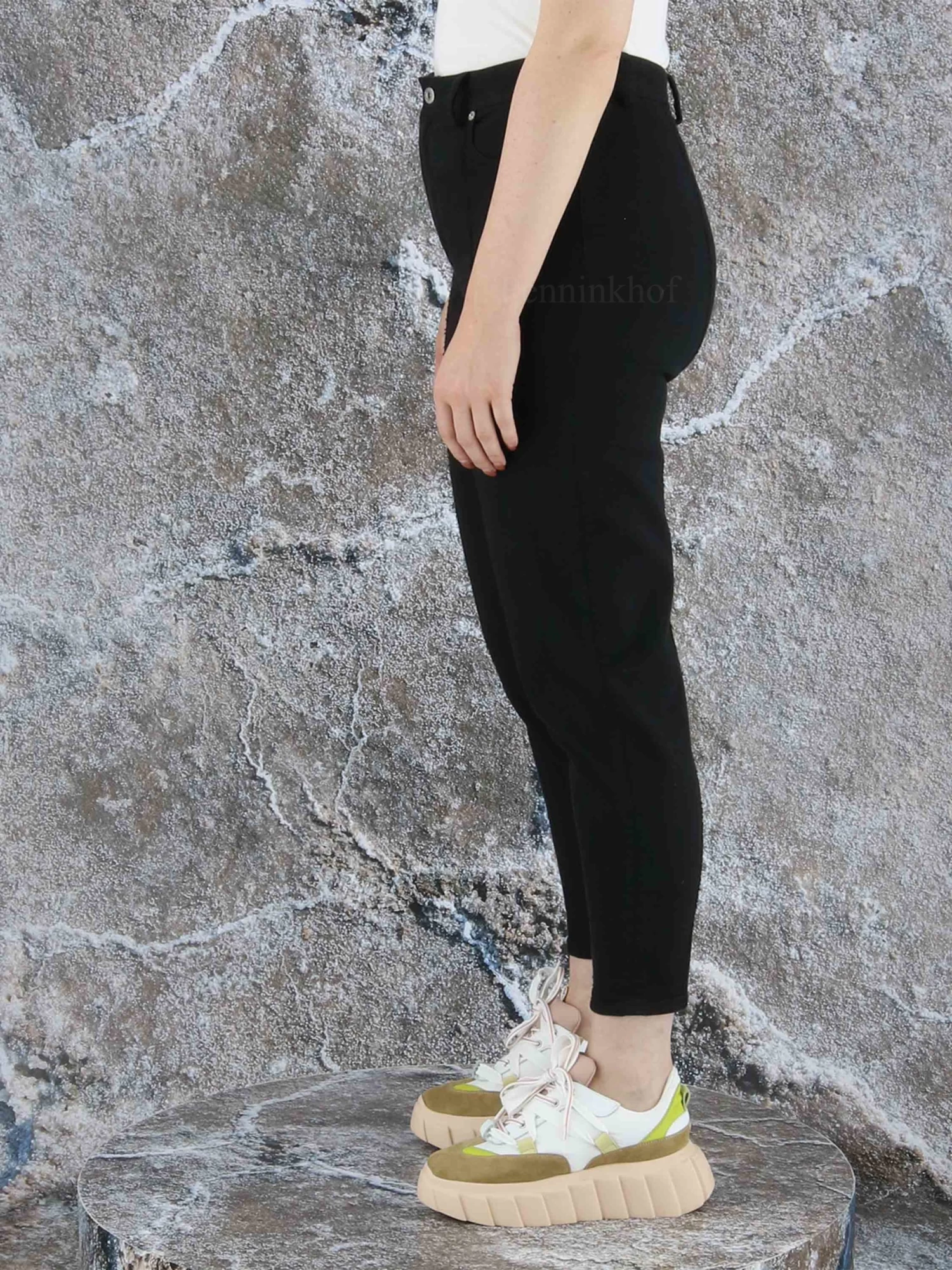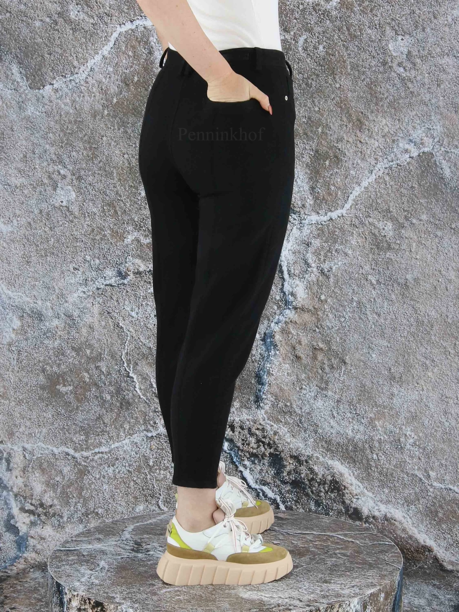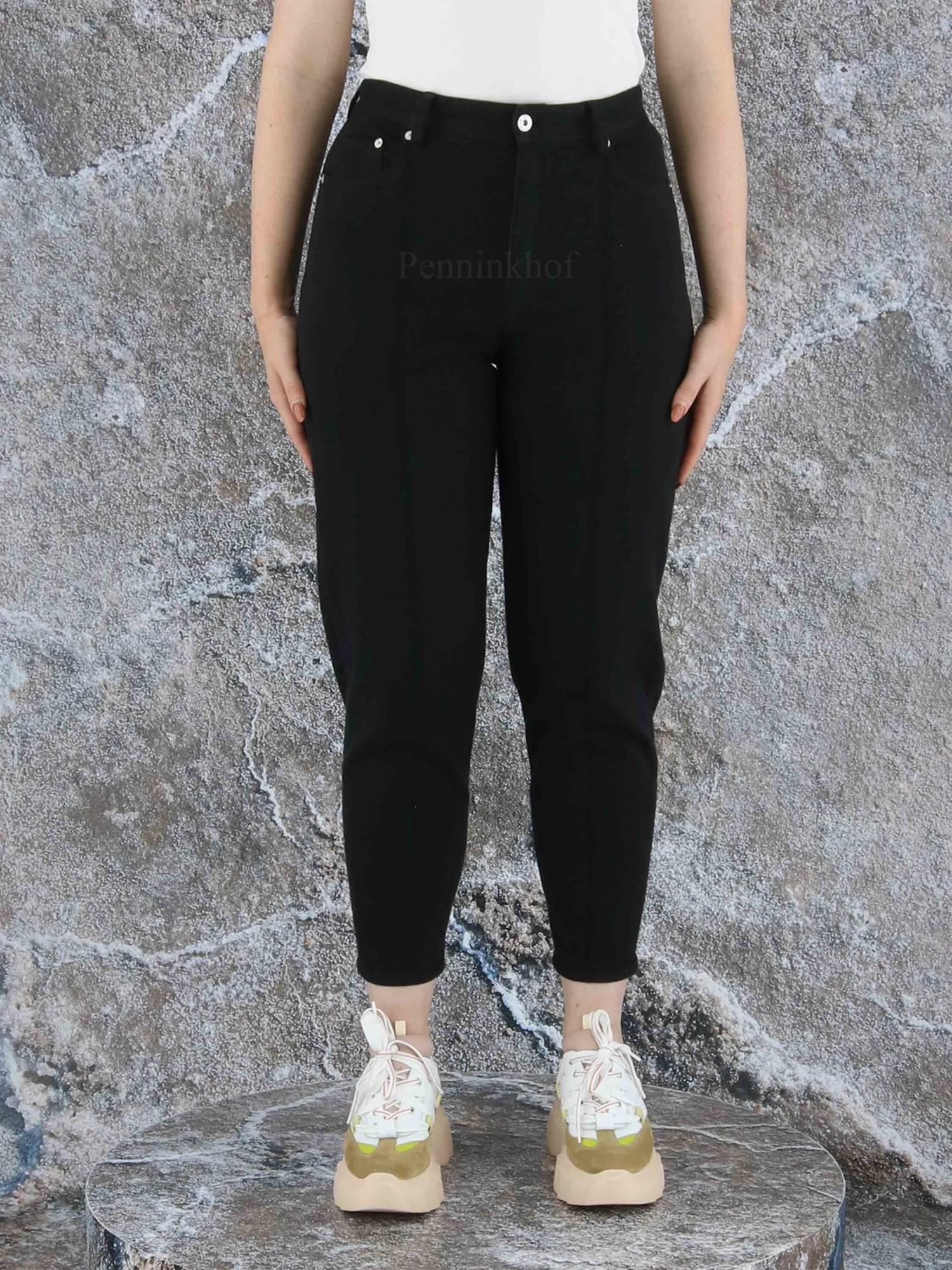 Een jeans van Annette Görtz in de kleur zwart. De jeans is in een 5 pocket model. Over het midden van de pijpen is een decoratieve naad. Deze jeans mag op 30 graden worden gewassen.