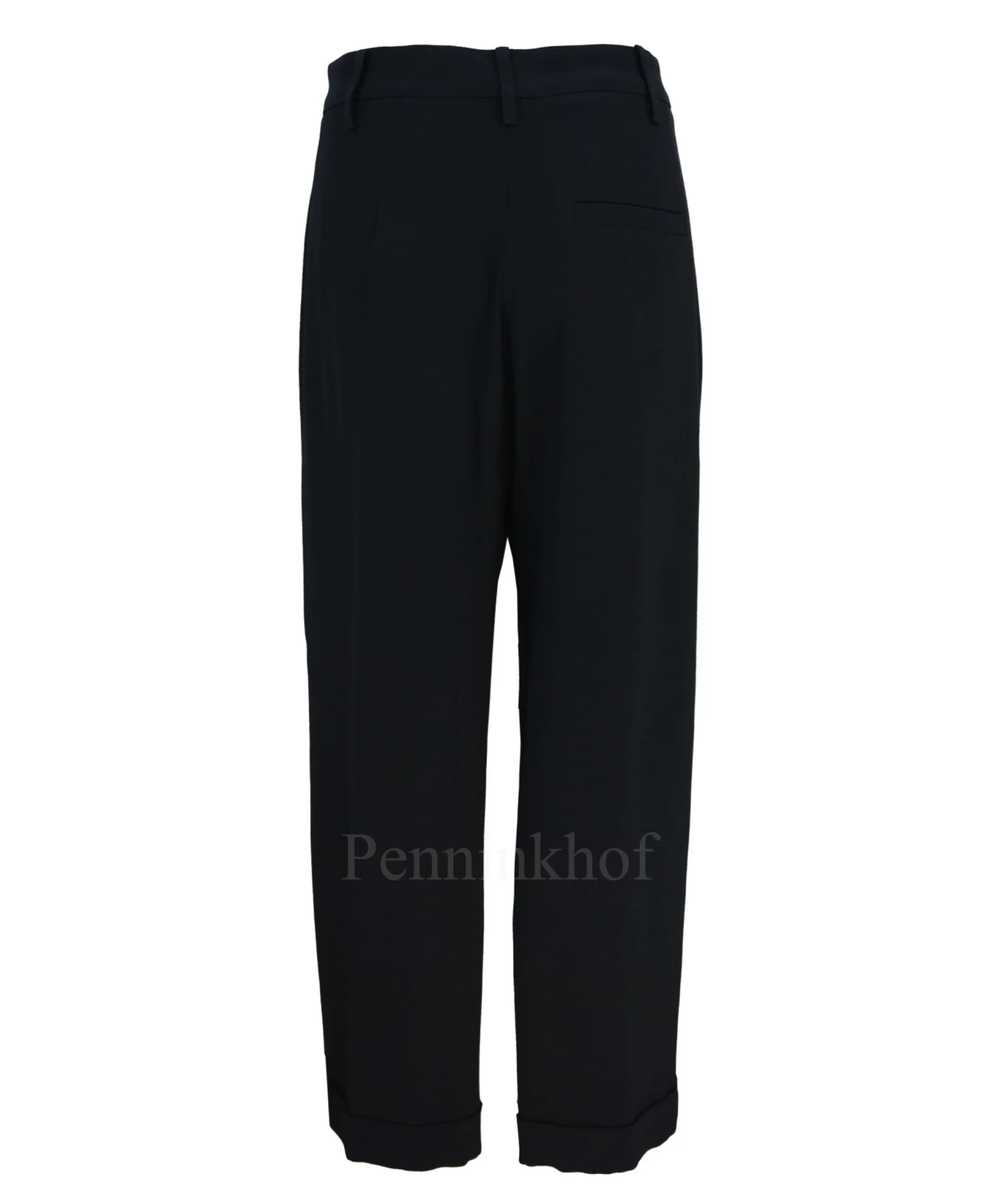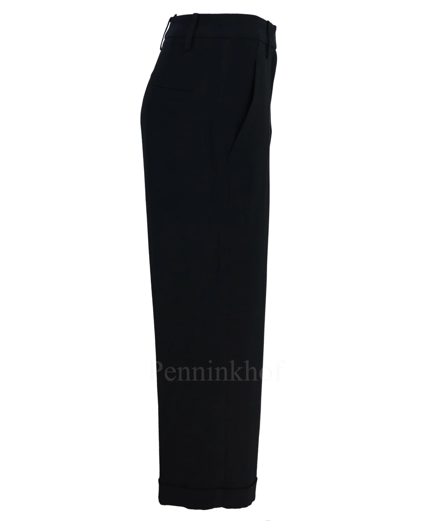 Een wijde broek van Annette Görtz in de kleur zwart. De broek heeft steekzakken en aan de onderkant is een korte omslag. Deze broek mag op 30 graden worden gewassen.