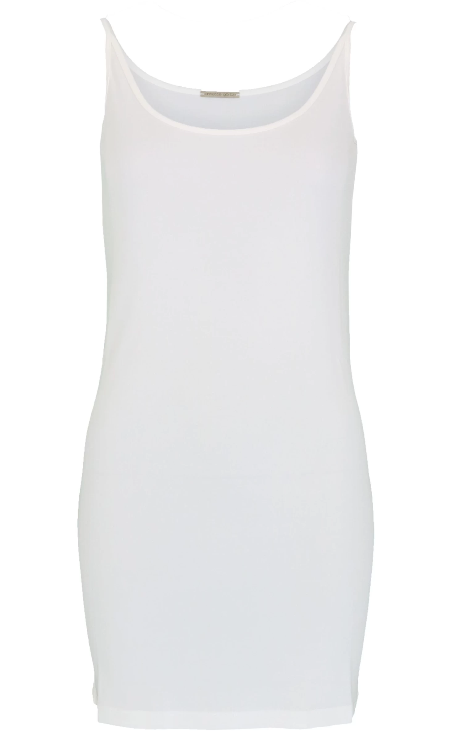 Een lange top van Annette Görtz in de kleur roomwit. De top heeft een ronde hals en spaghetti schouderbandjes. Deze top mag op 30 graden worden gewassen.