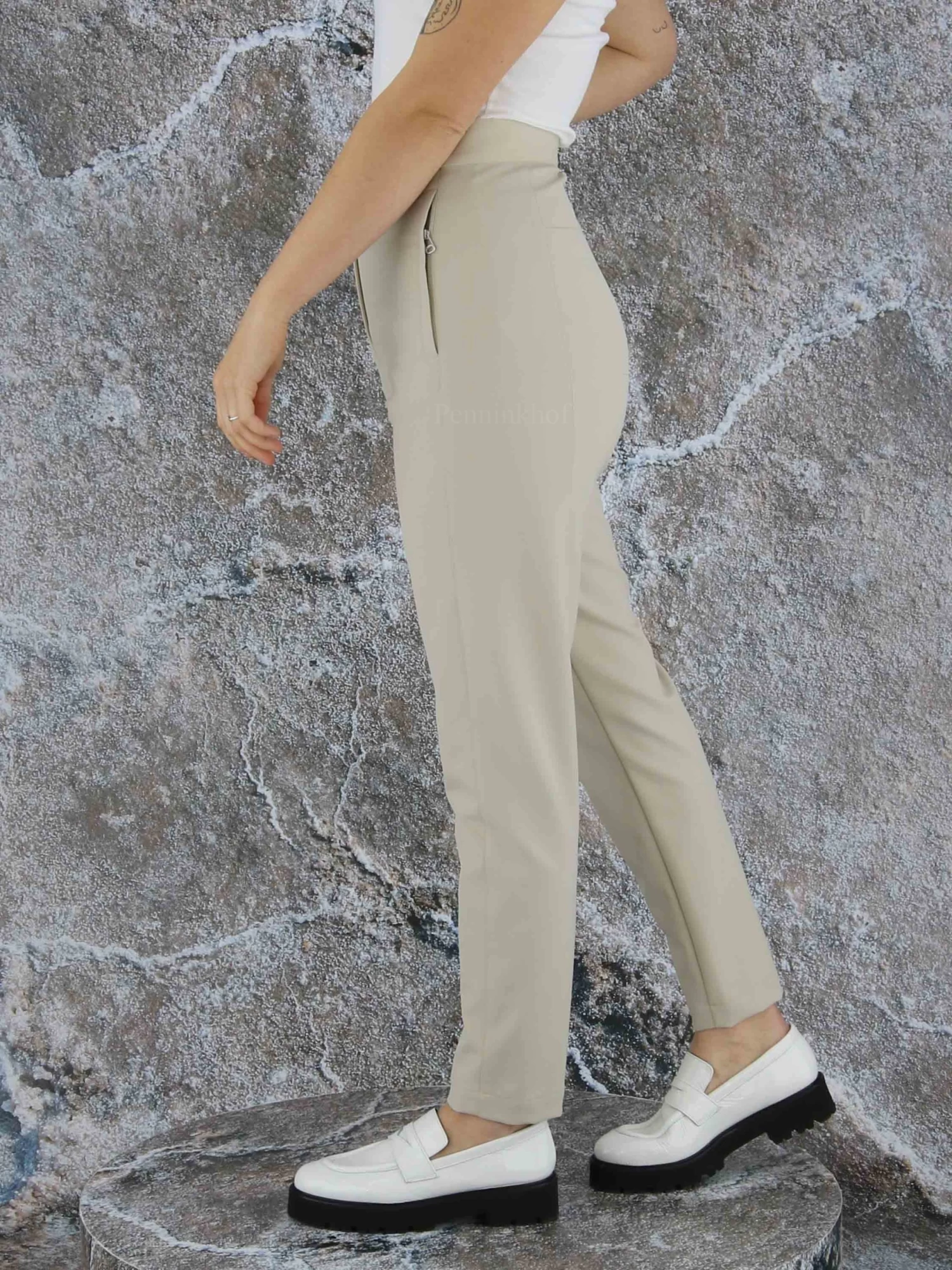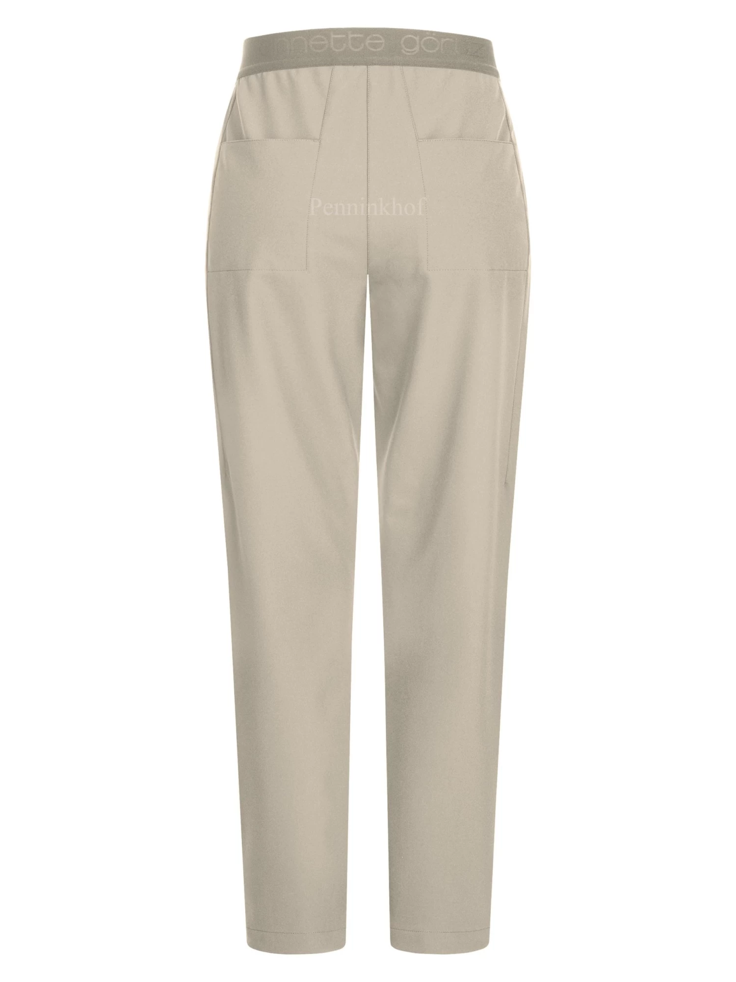Een broek van Annette Görtz in de kleur beige. In de taille is een elastieken band. De steekzakken hebben een ritssluiting. Deze broek mag op 30 graden worden gewassen.