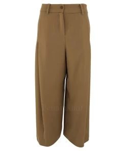Een wijde broek van Annette Görtz in de kleur camel. De broek heeft aan de voorzijde 2 bandplooien. Deze broek mag op 30 graden worden gewassen.