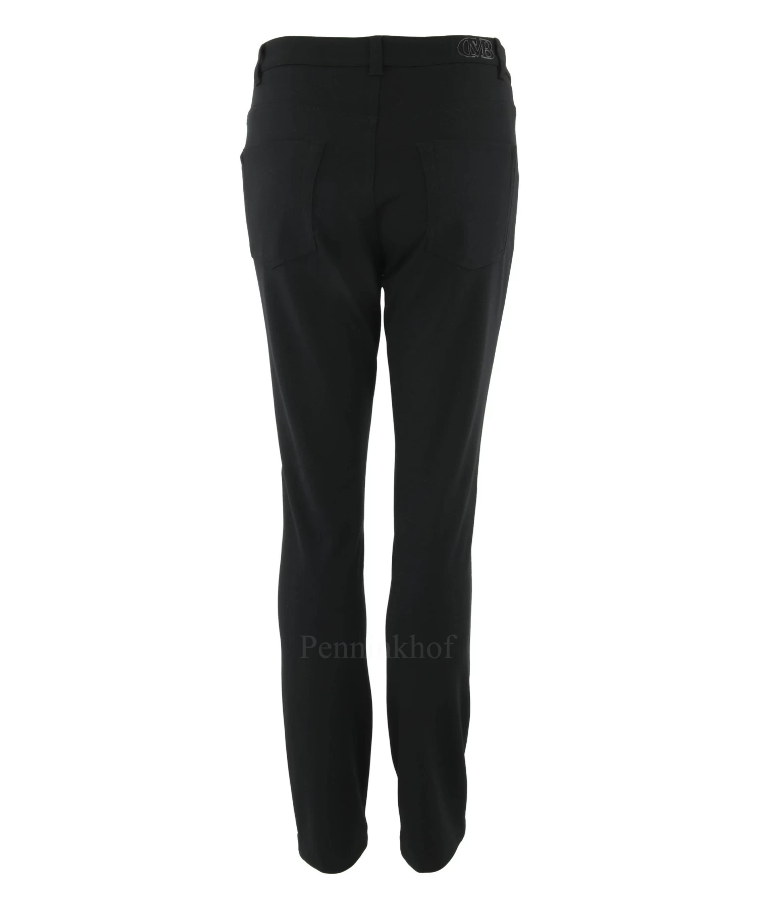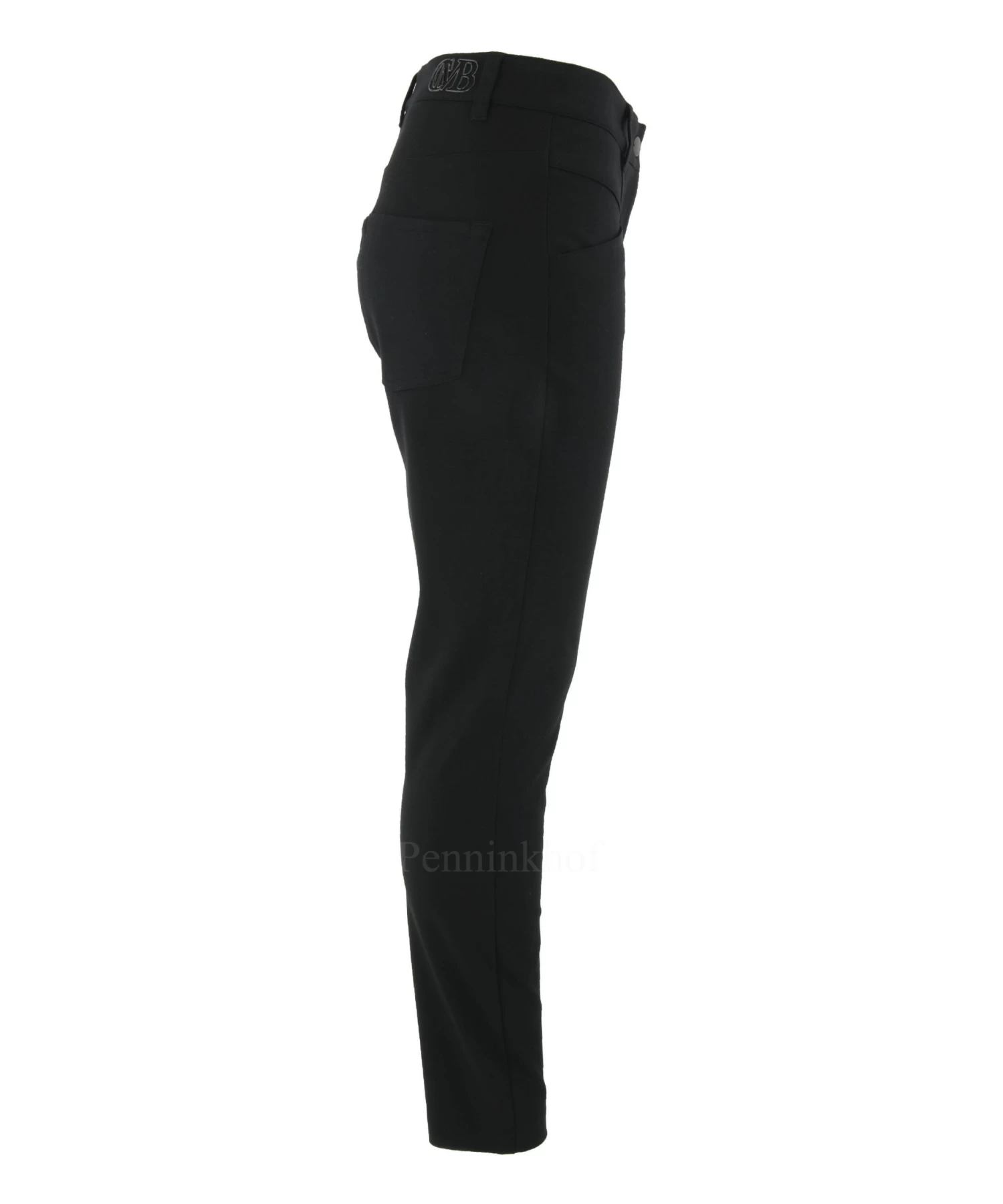 Een broek van Cambio in de kleur zwart. In het midden van de pijpen is een stiknaad. deze broek mag op de hand worden gewassen.