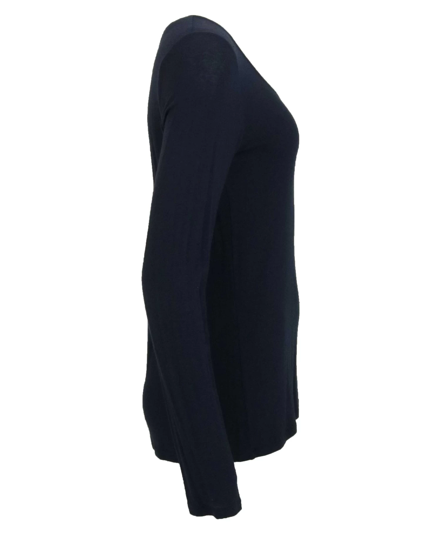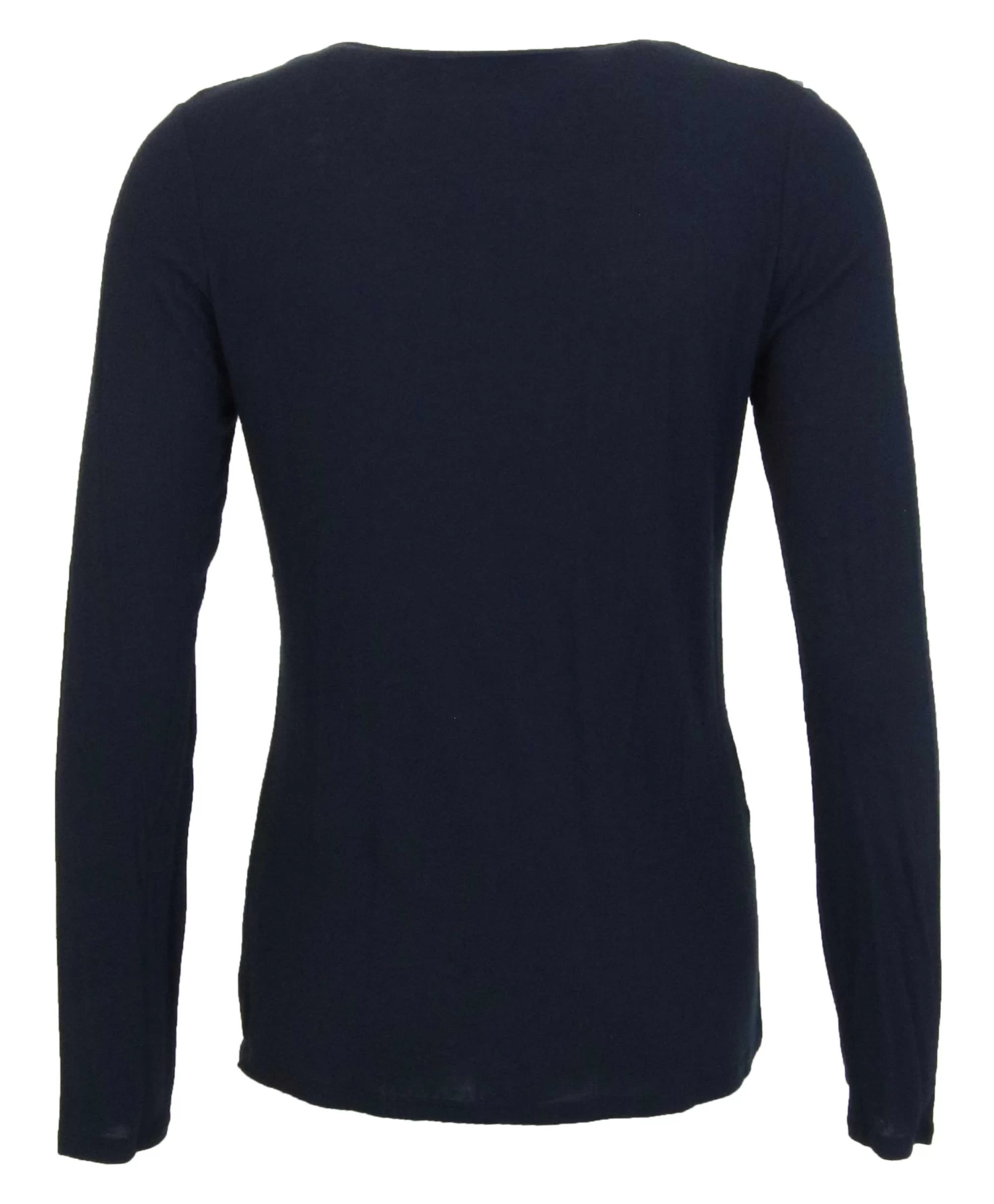Een shirt van Cassiopée in de kleur marineblauw met een ronde hals en lange mouwen. Dit shirt mag op de hand worden gewassen.