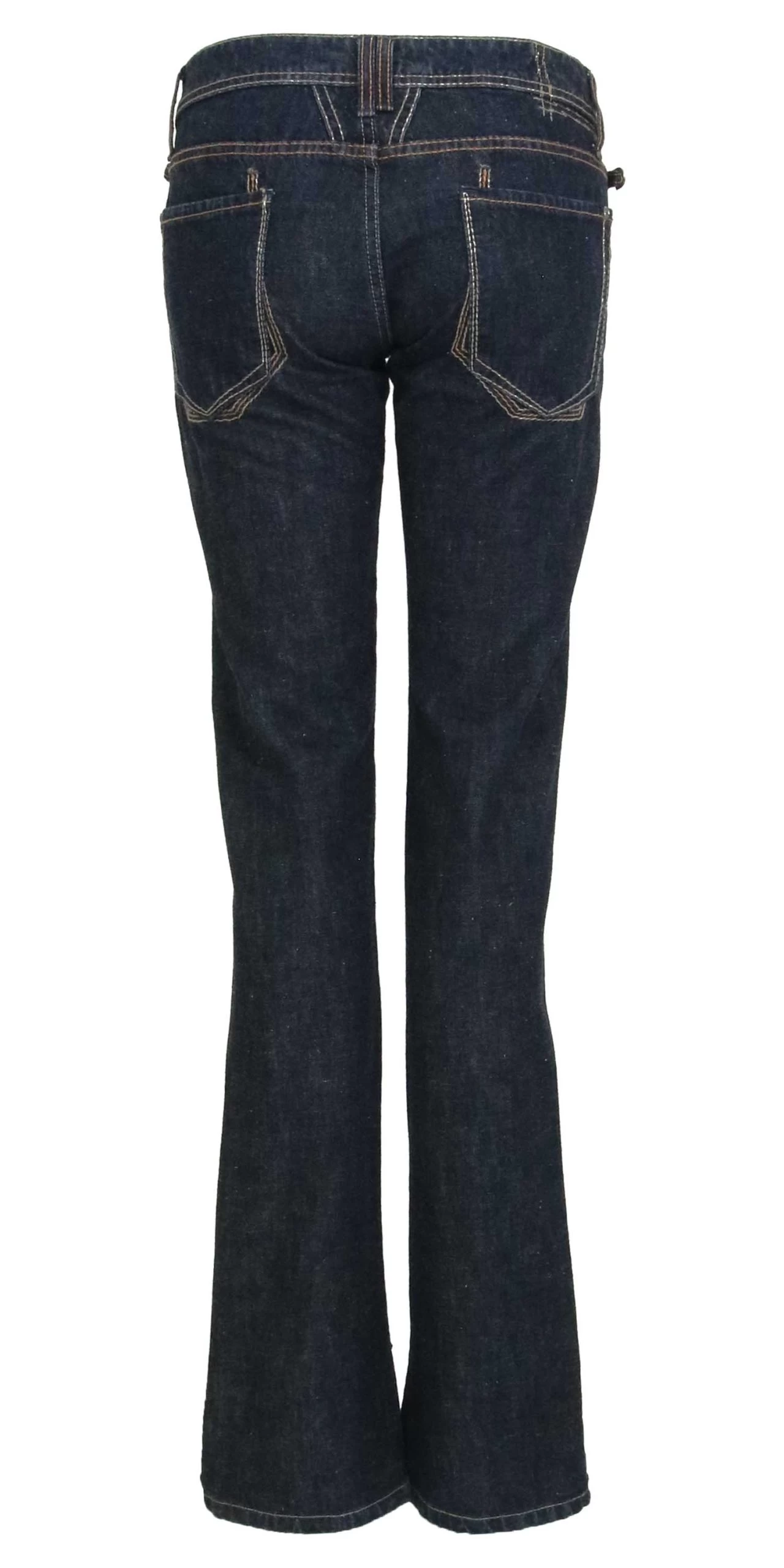 Een jeans van Girbaud in een donkere jeans kleur. De jeans heeft steekzakken. Aan de onderkant van de pijpen is een stiknaad. De achtzijde van de ondrkant is iets langer als de voorzijde. deze jeans mag op 30 graden worden gewassen.