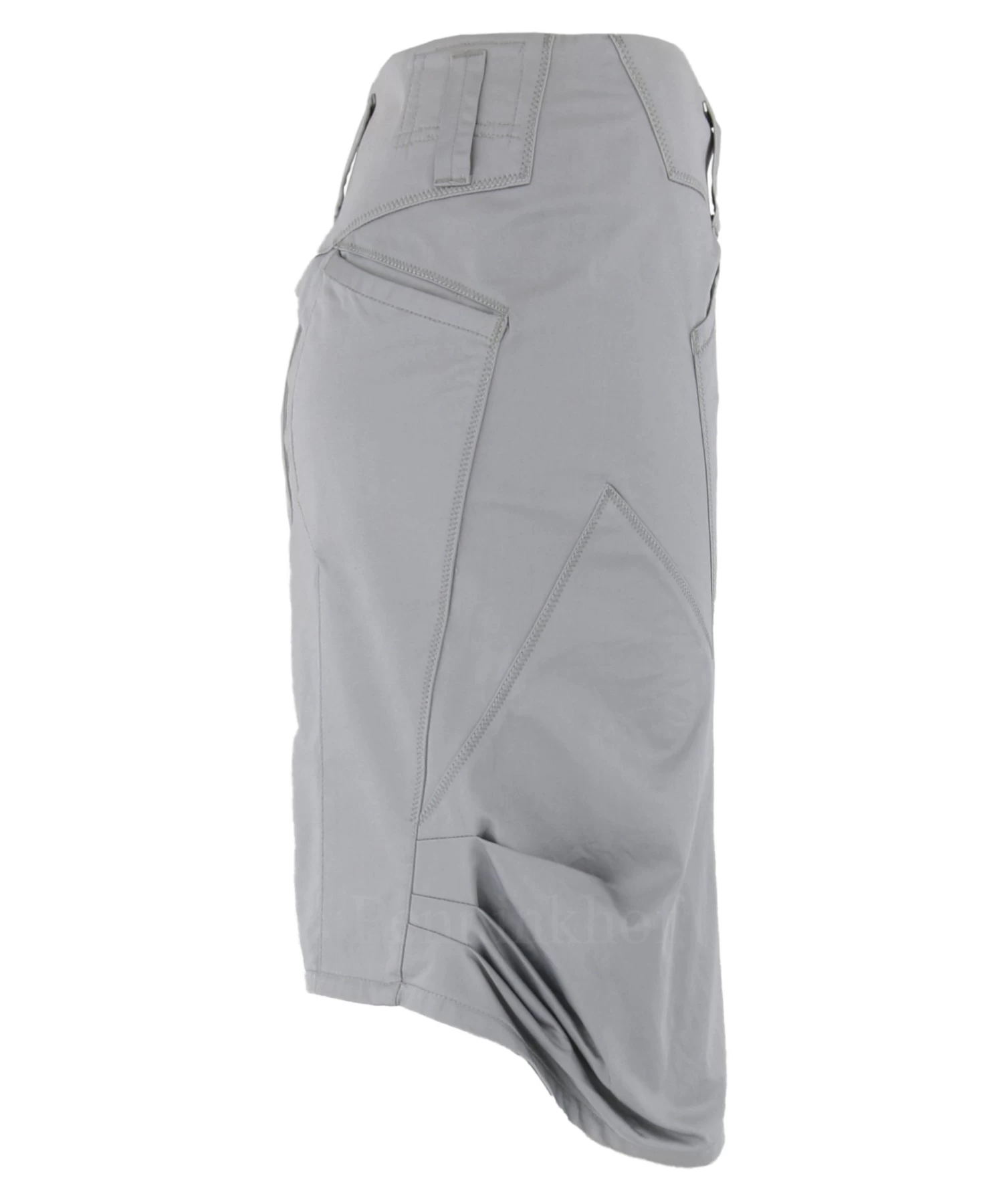 Een rok van Girbaud in de kleur grijs. De rok heeft verschillende diagonale stiknaden. Onder de taille zijn steekzakken. Deze rok mag op 30 graden worden gewassen.