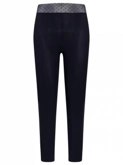 Een legging van High in de kleur marineblauw. In de taille is een brede elastieken band in een net structuur. Deze legging mag op 30 graden worden gewassen.