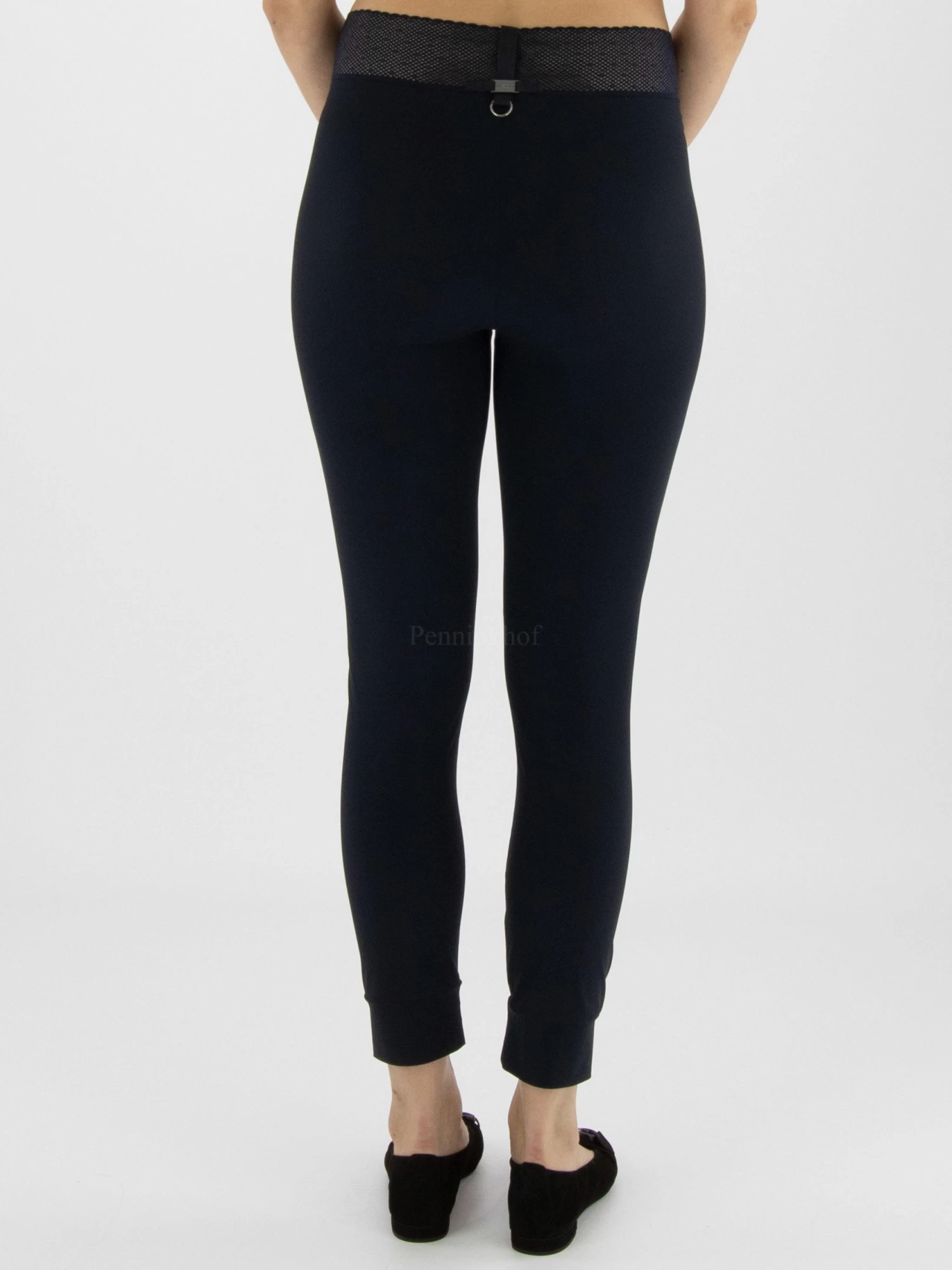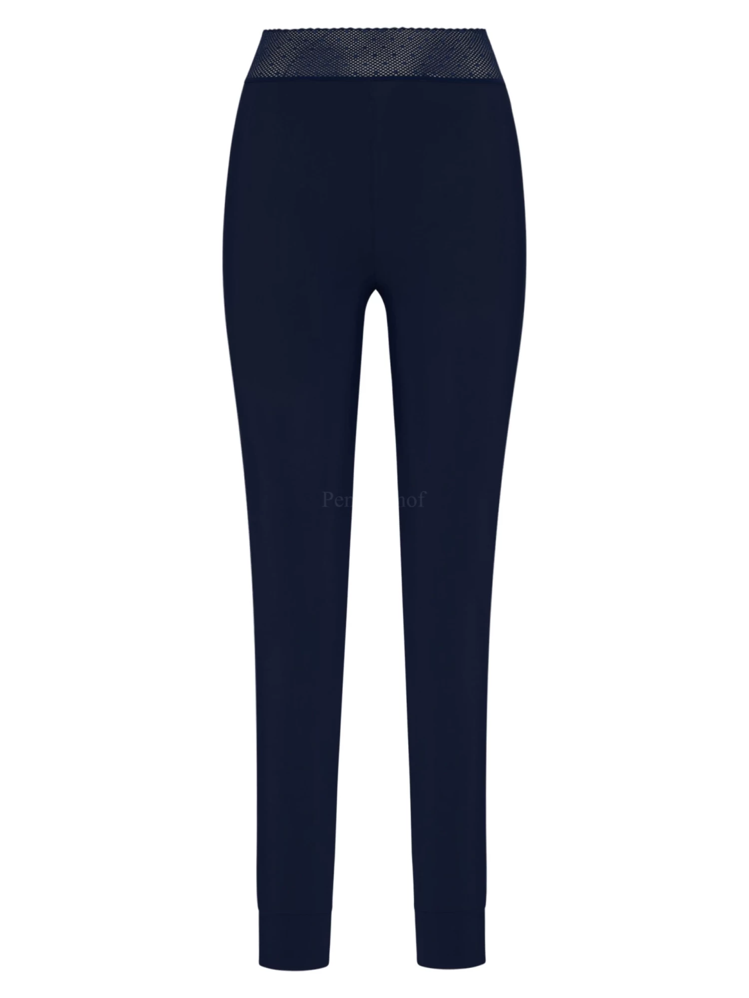 Een legging van High in de kleur marineblauw. In de taille is een brede elastieken band in een net structuur. Deze legging mag op 30 graden worden gewassen.