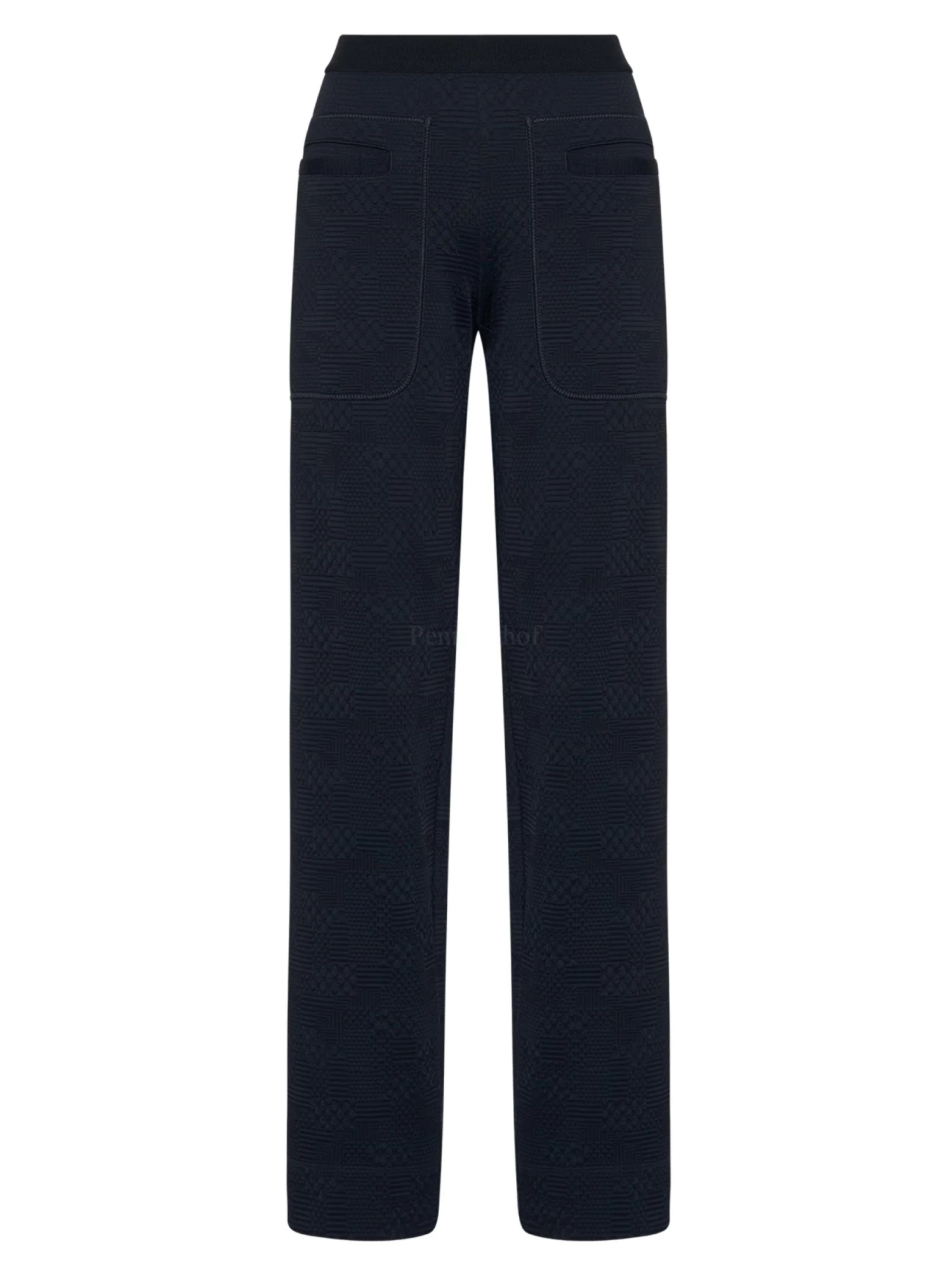 Een luxe broek van High in een grafische reliëfprint. In de taille is een elastieken band. Deze broek mag op 30 graden worden gewassen.