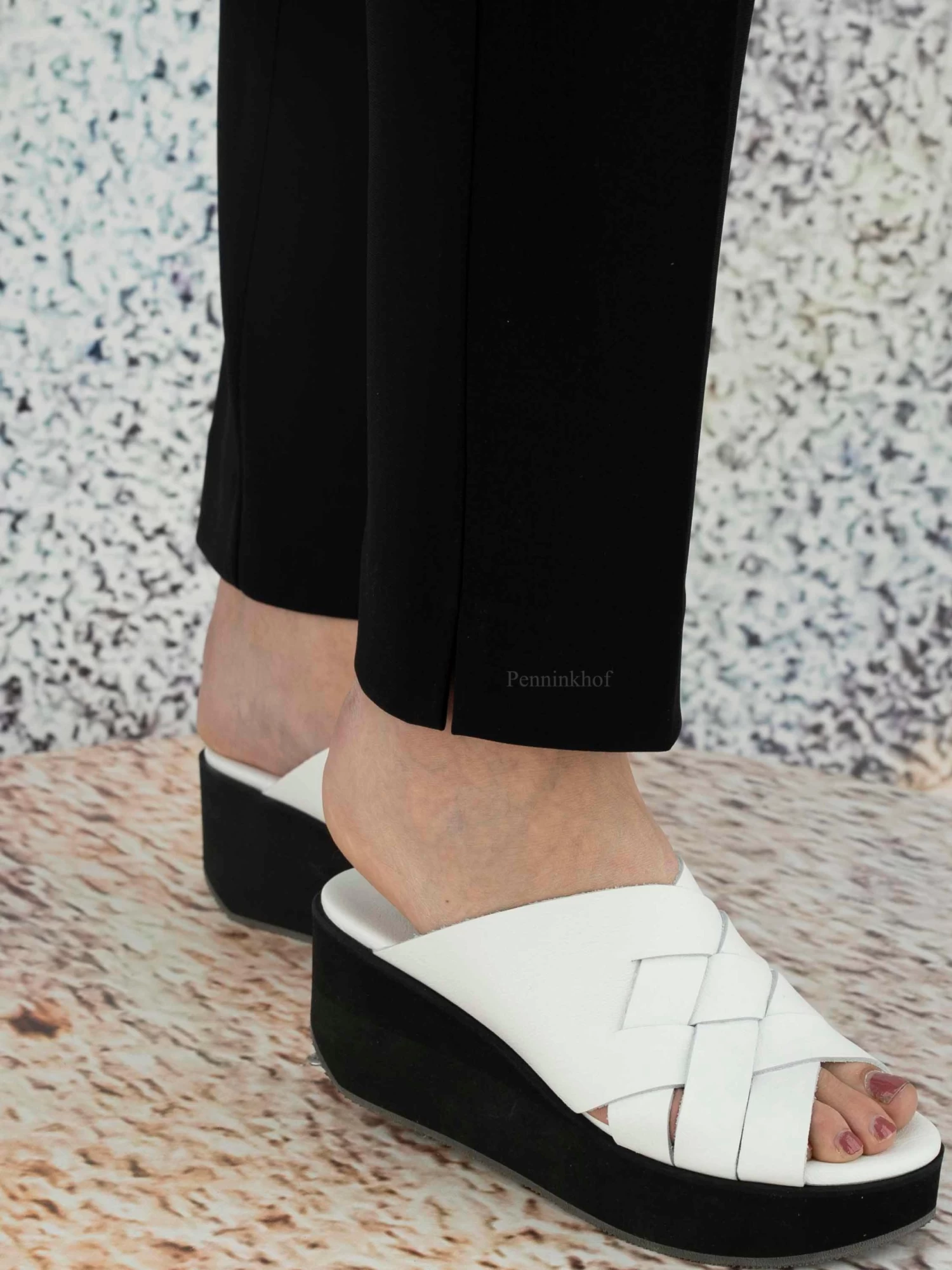 Een broek van Joseph Ribkoff in de kleur zwart. |in de taille is een brede elastische band. In het midden van de pijpen is een ingestreken plooi. Aan de onderkant van de pijpen zijn 2 kleine splitjes. deze broek mag op de hand worden gewassen.