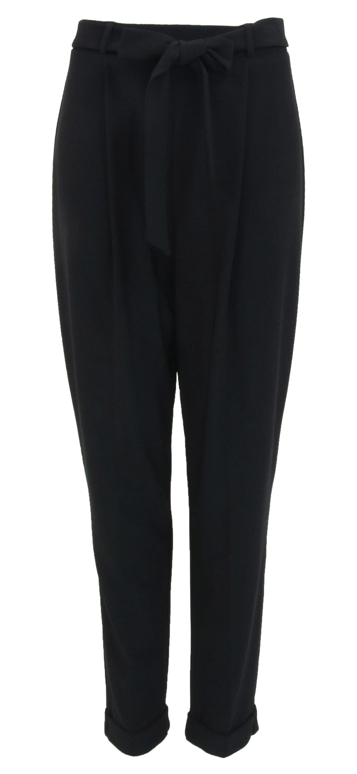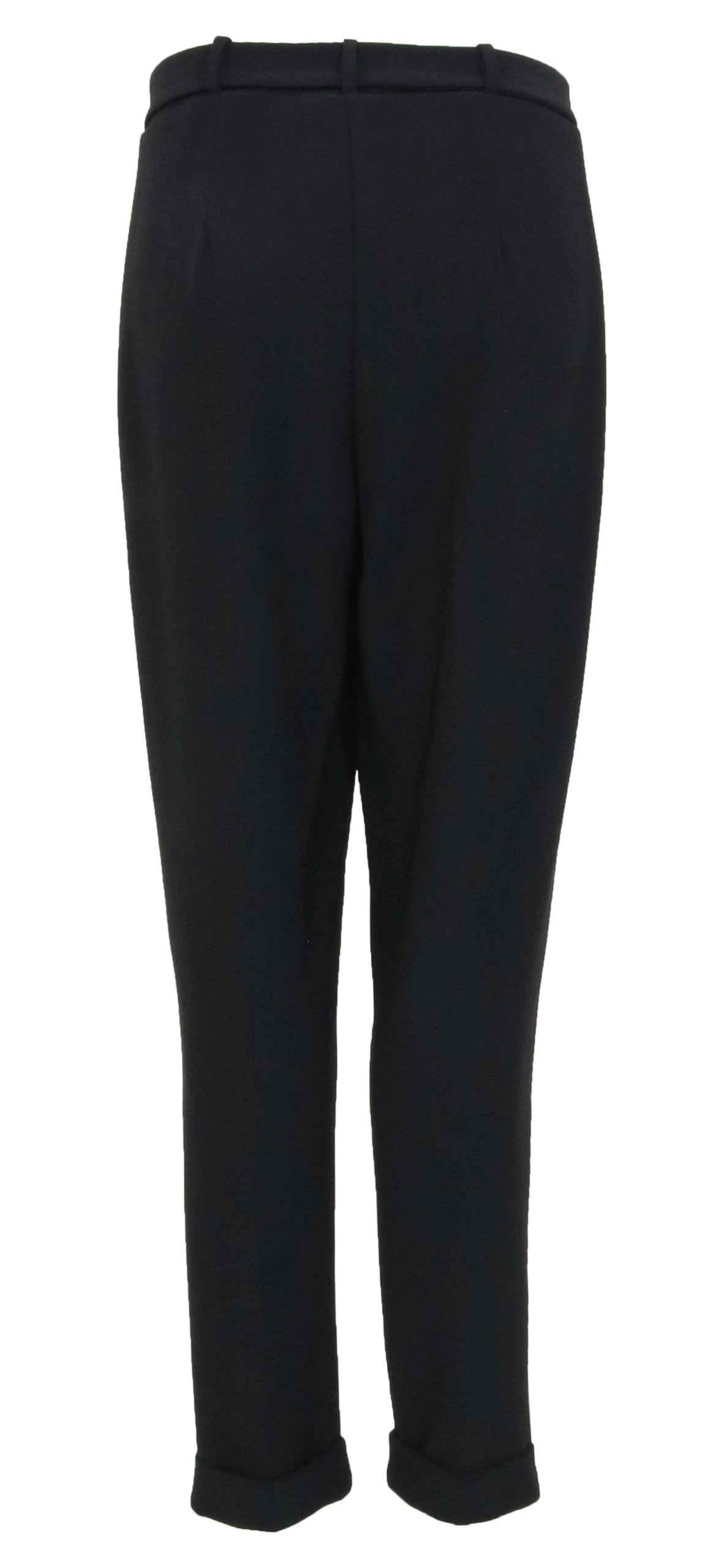 Een broek van Joseph Ribkoff in de kleur zwart. De broek heeft een ceintuur in dezelfde stof als de broek. Aan de onderkant van de pijpen is een korte omslag. Deze broek mag op de hand worden gewassen.