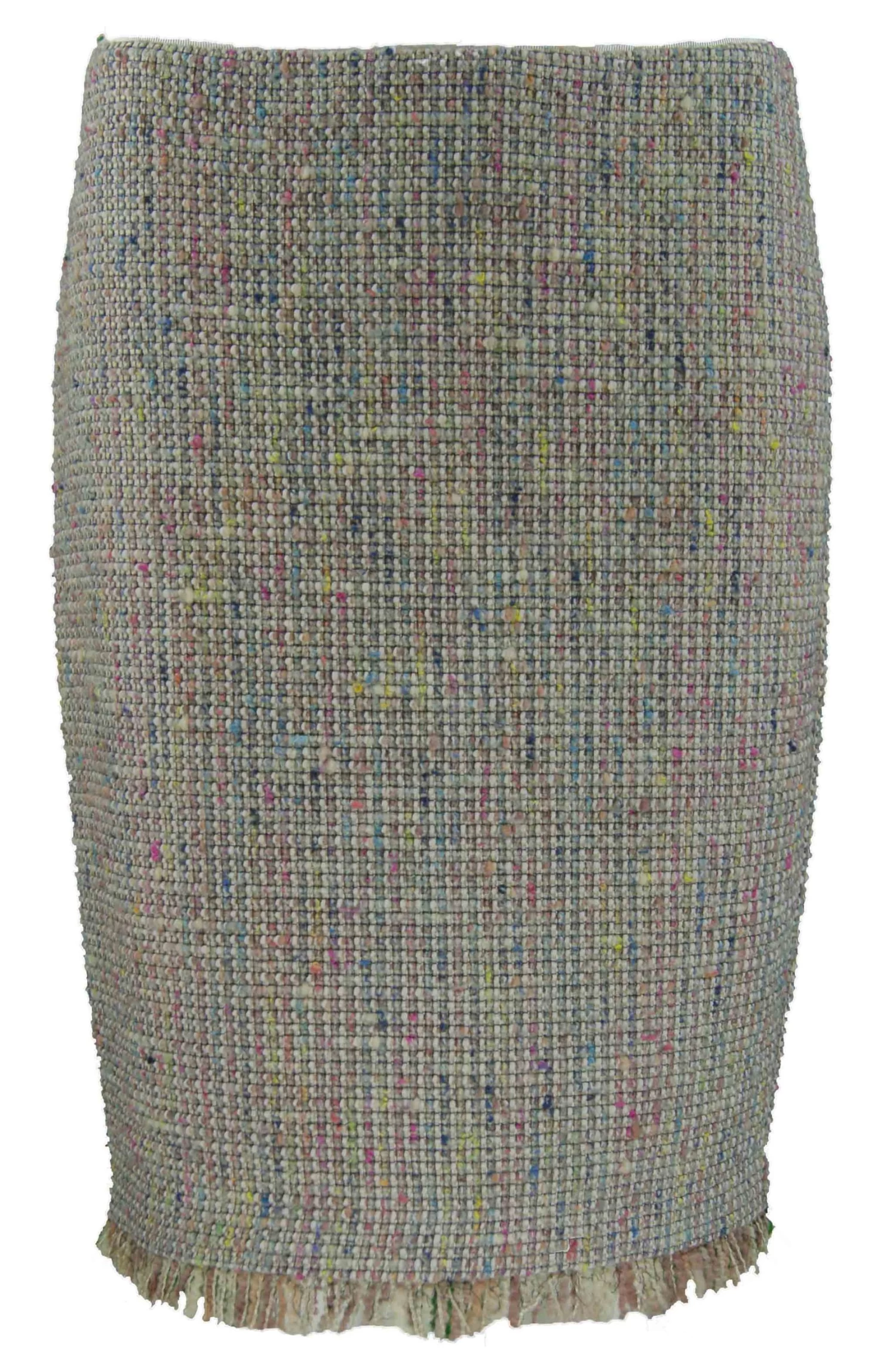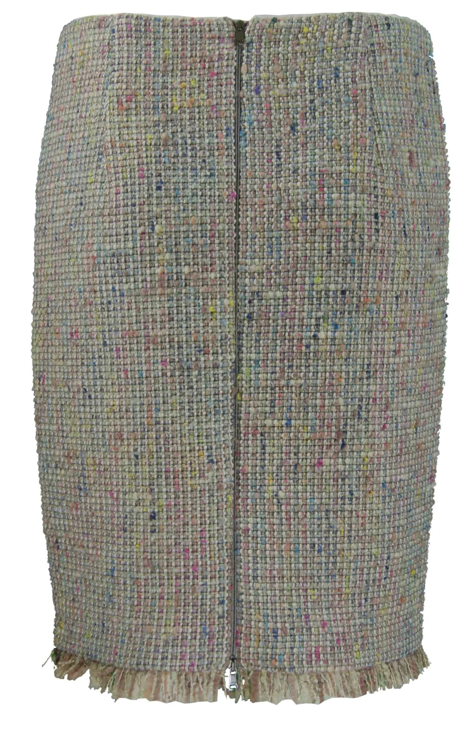 Een rok van het merk Marc Cain in een mix van kleuren met als hoofkleur zand.De onderzijde van de rok is gerafeld. De rok heeft een binnenvoering en mag niet worden gewassen.