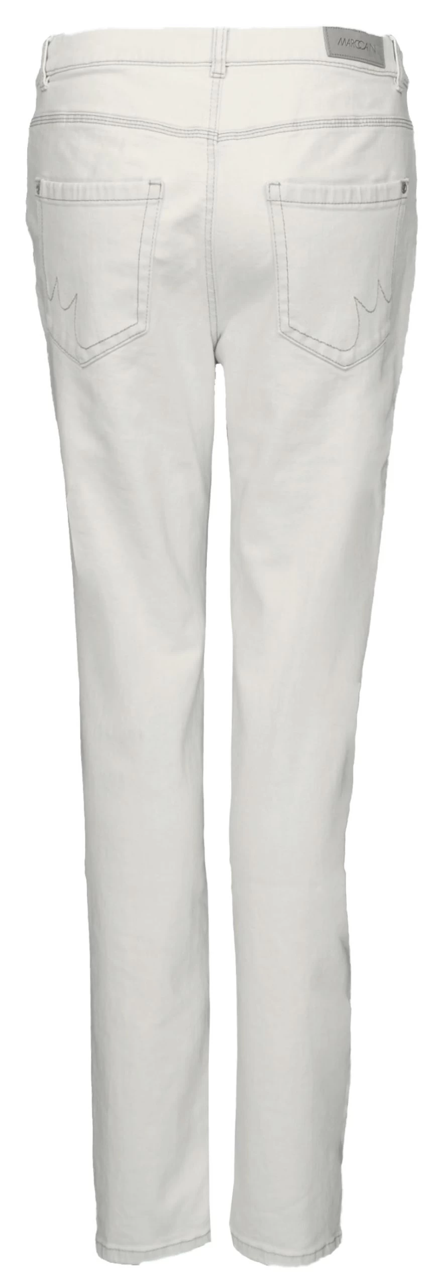 Een gewassen jeans van het merk Marc Cain in een ijs blauwe kleur. De jeans heeft een 5 pocket model. De jeans heeft een verborgen rits sluiting voor. Deze jeans mag op 30 graden worden gewassen.