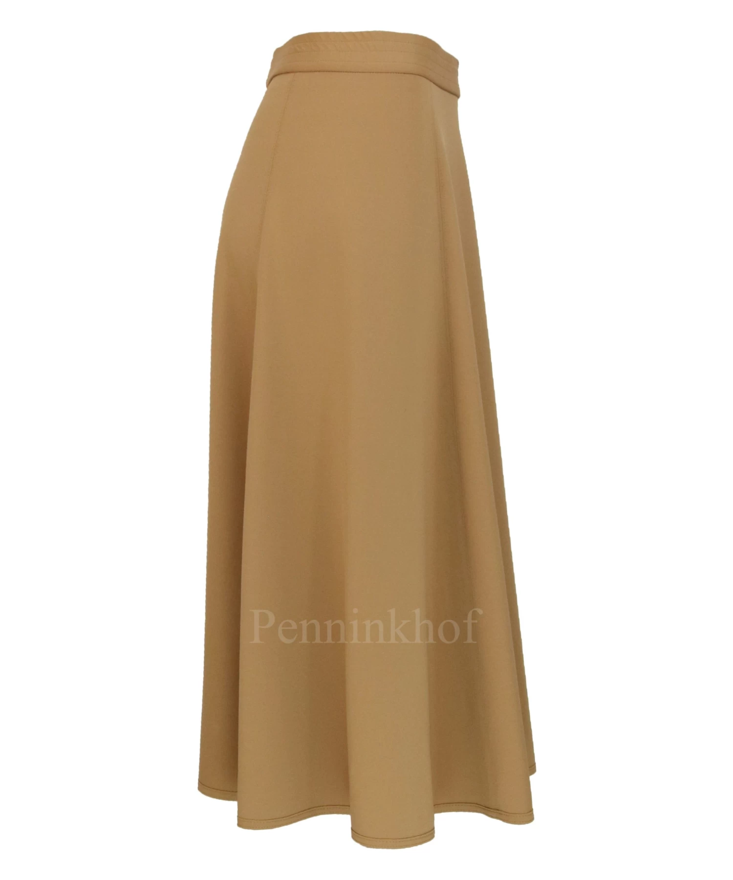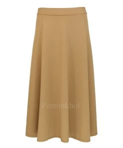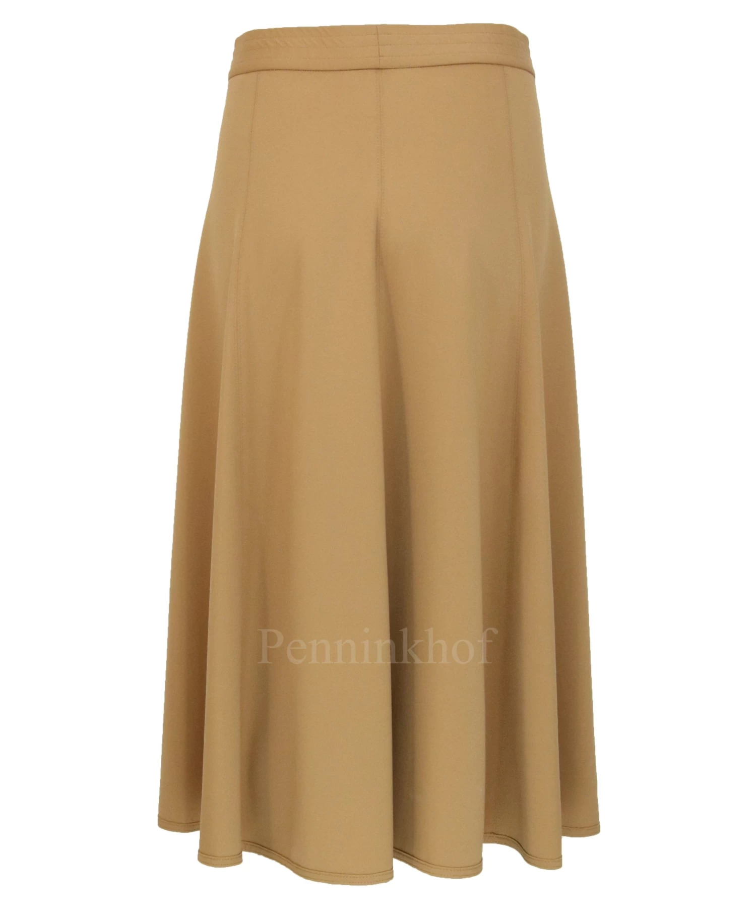 Een rok van Marc Cain in de kleur cognac. In de taille is een elastieken band met meerdere decoratieve stiknaden. De rok heeft een A – lijn en is ongevoerd. deze rok mag op 30 graden worden gewassen.