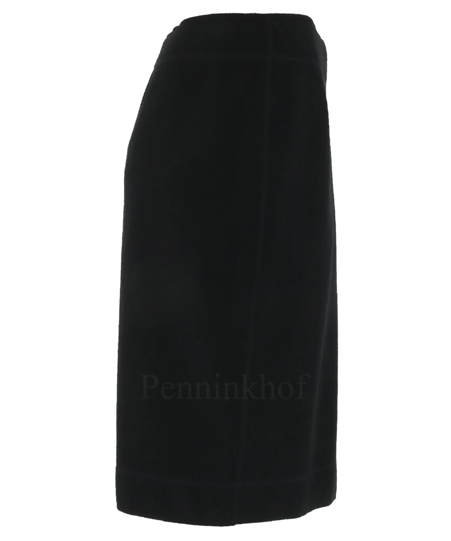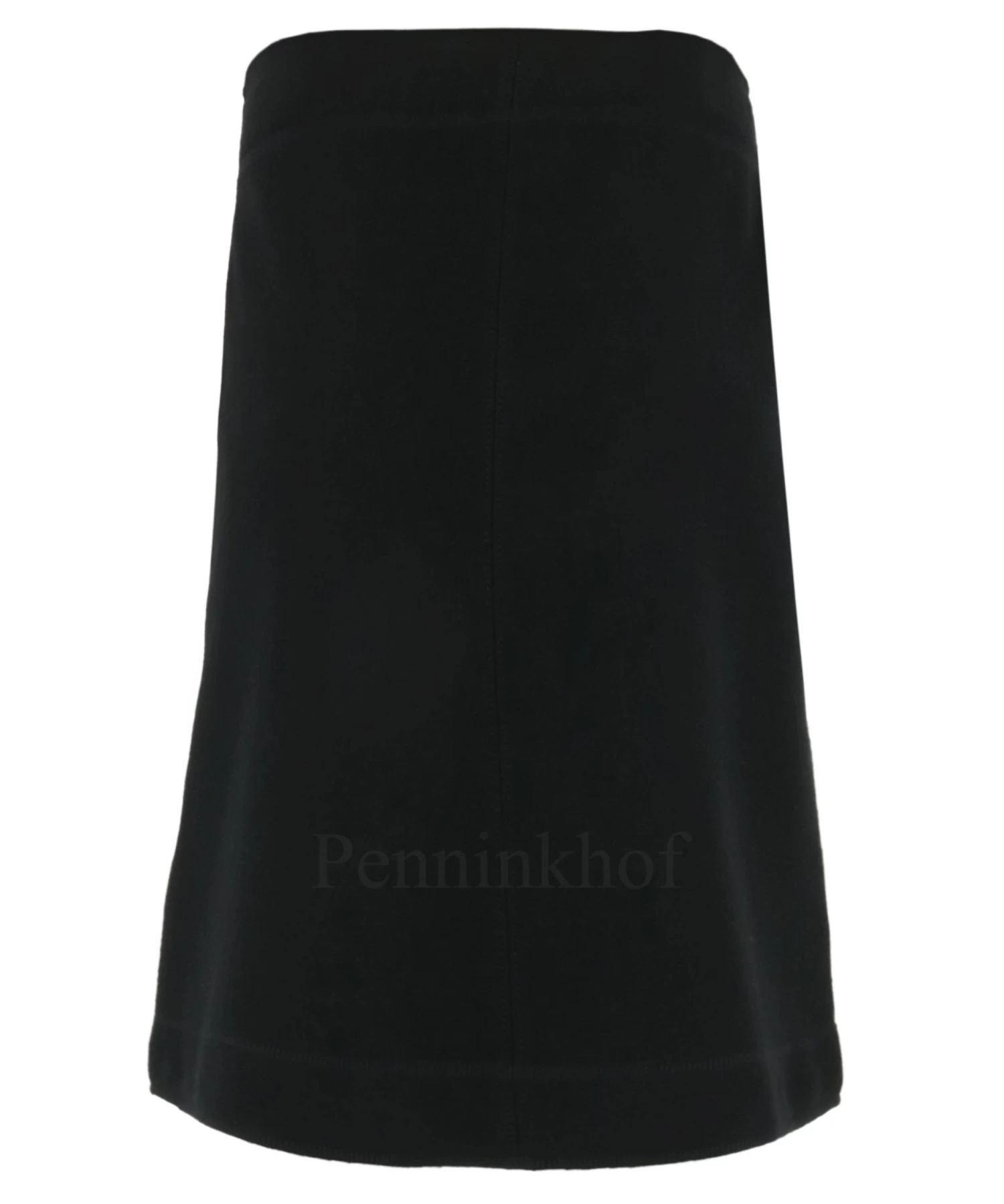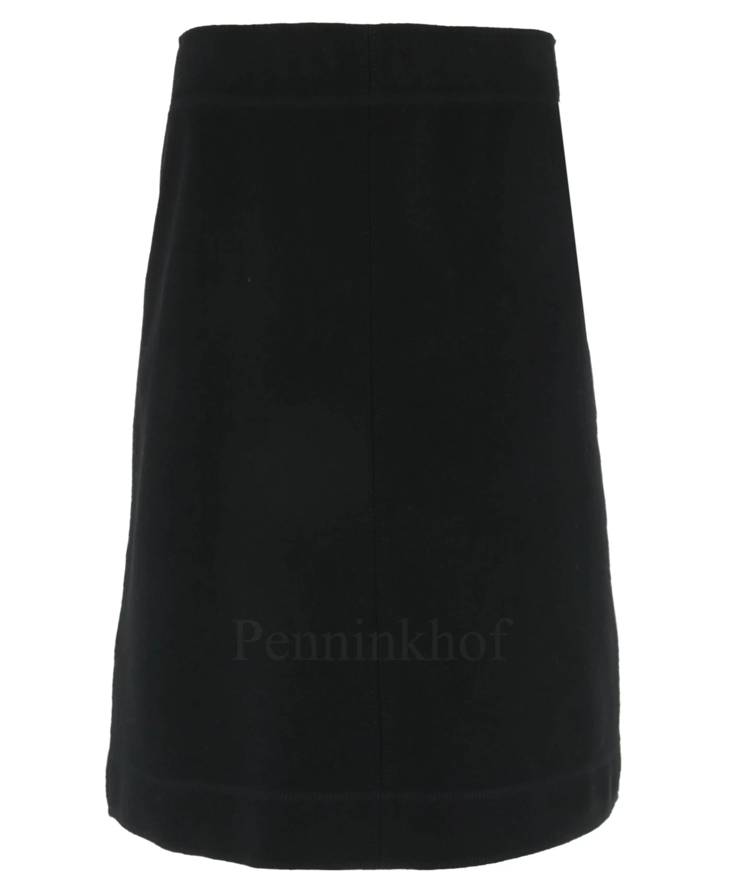 Een rok van Marc Cain in de kleur zwart. De rok is in een gekkokte wol kwaliteit. In de taille is een elastieken band. De rok is gevoerd en mag niet worden gewassen.