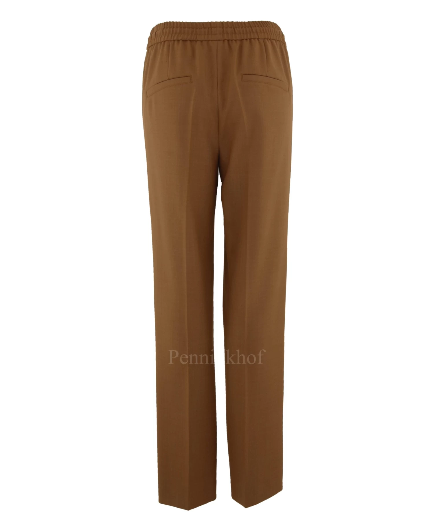 Een broek van Marc Cain in de kleur cognac. In de taille is een geplooide elastieken band. De broek heeft steekzakken en mag op 30 graden worden gewassen.