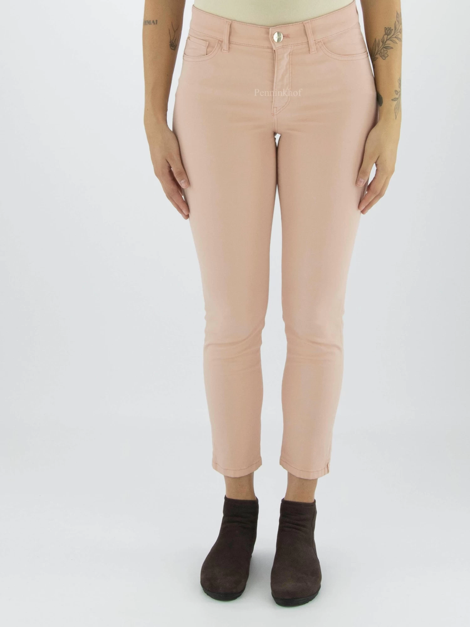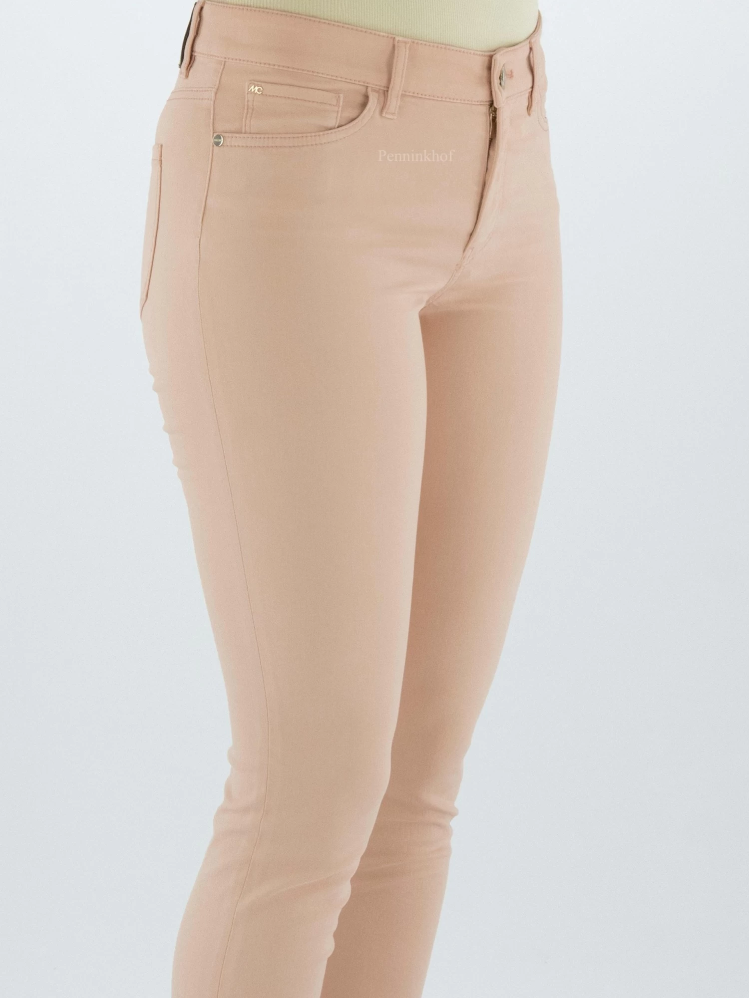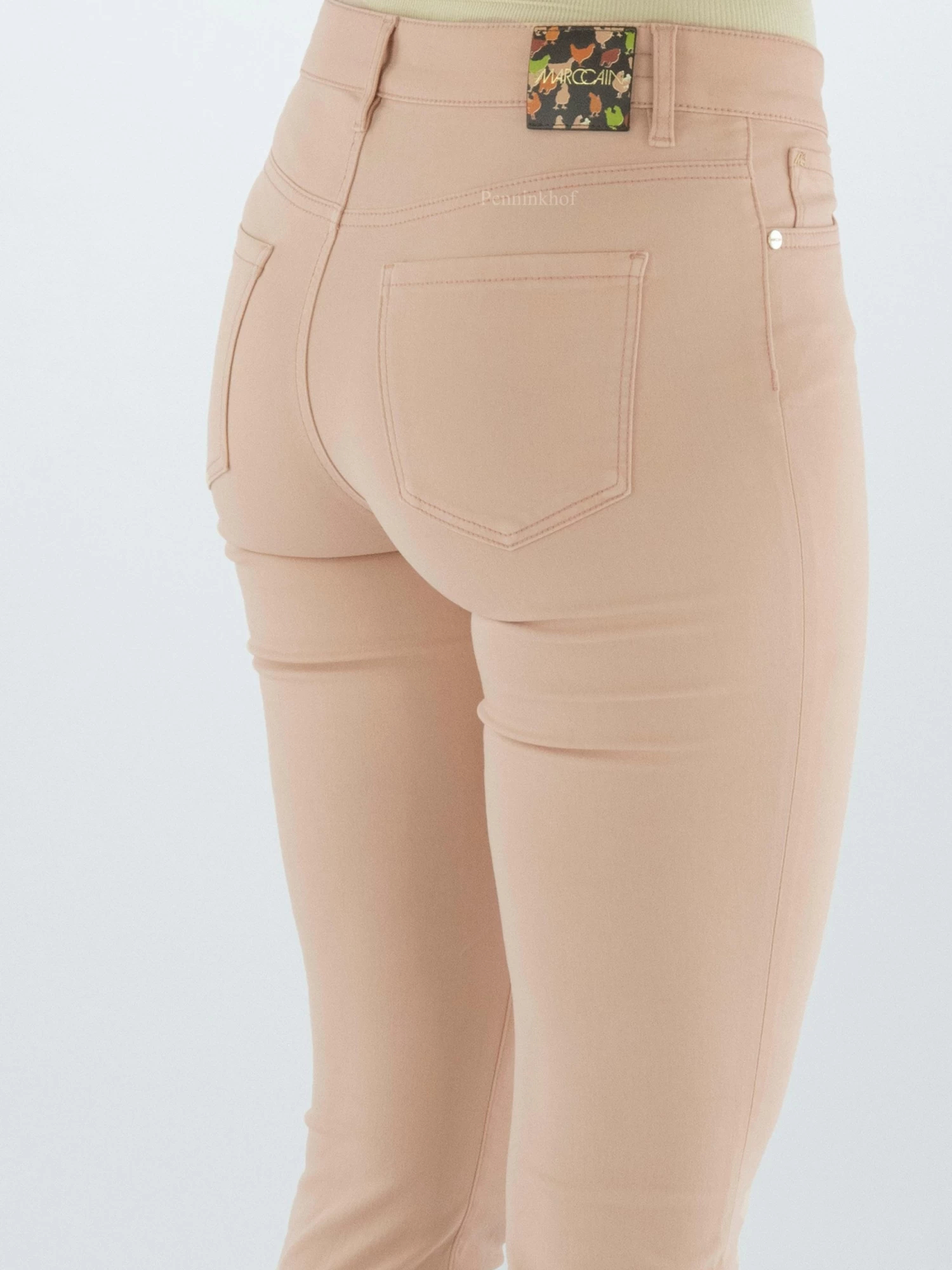 Een jeans van Marc Cain in een nude kleur. De jeans is in een 5 pocket model en mag op 30 graden worden gewassen.