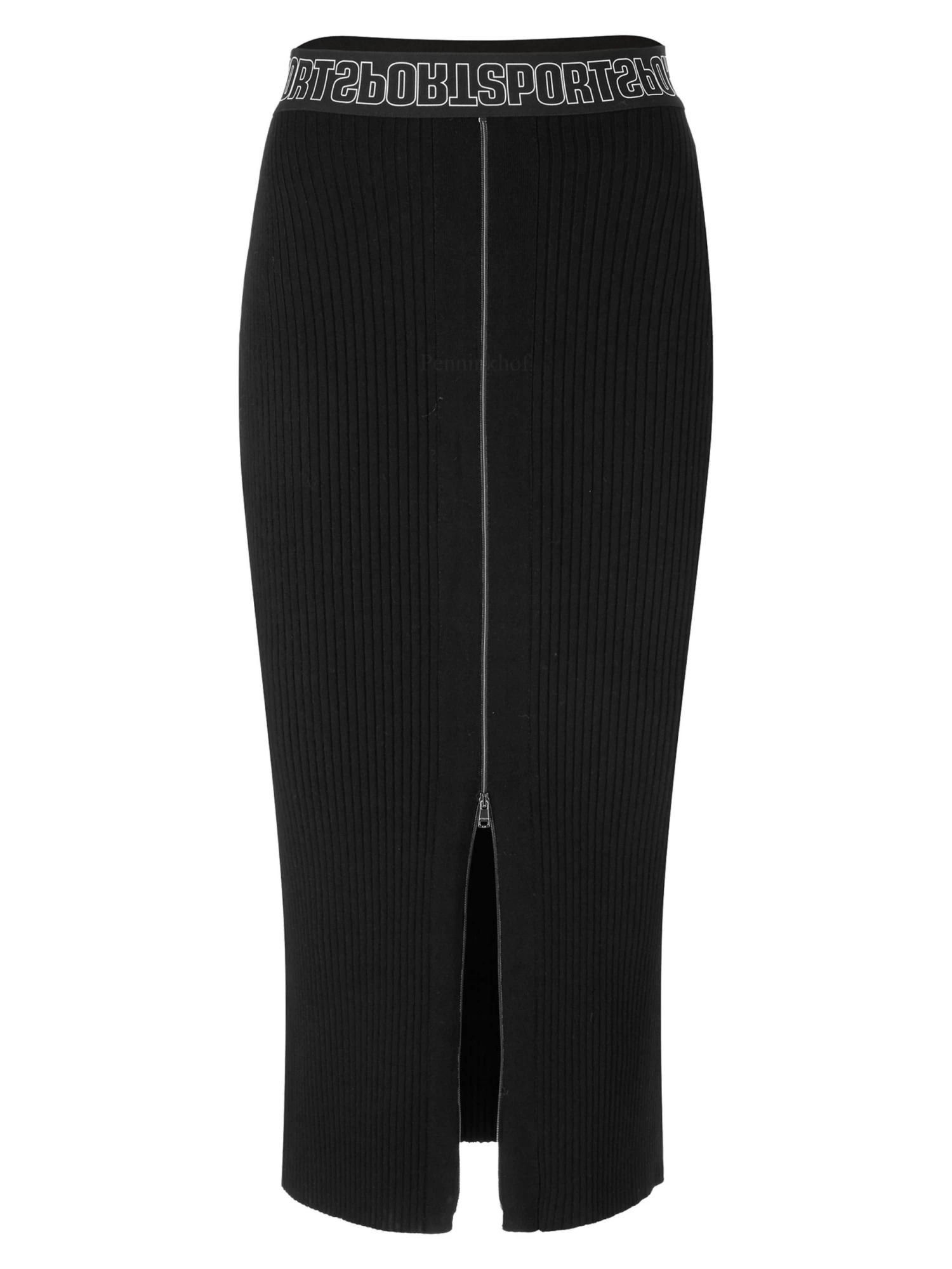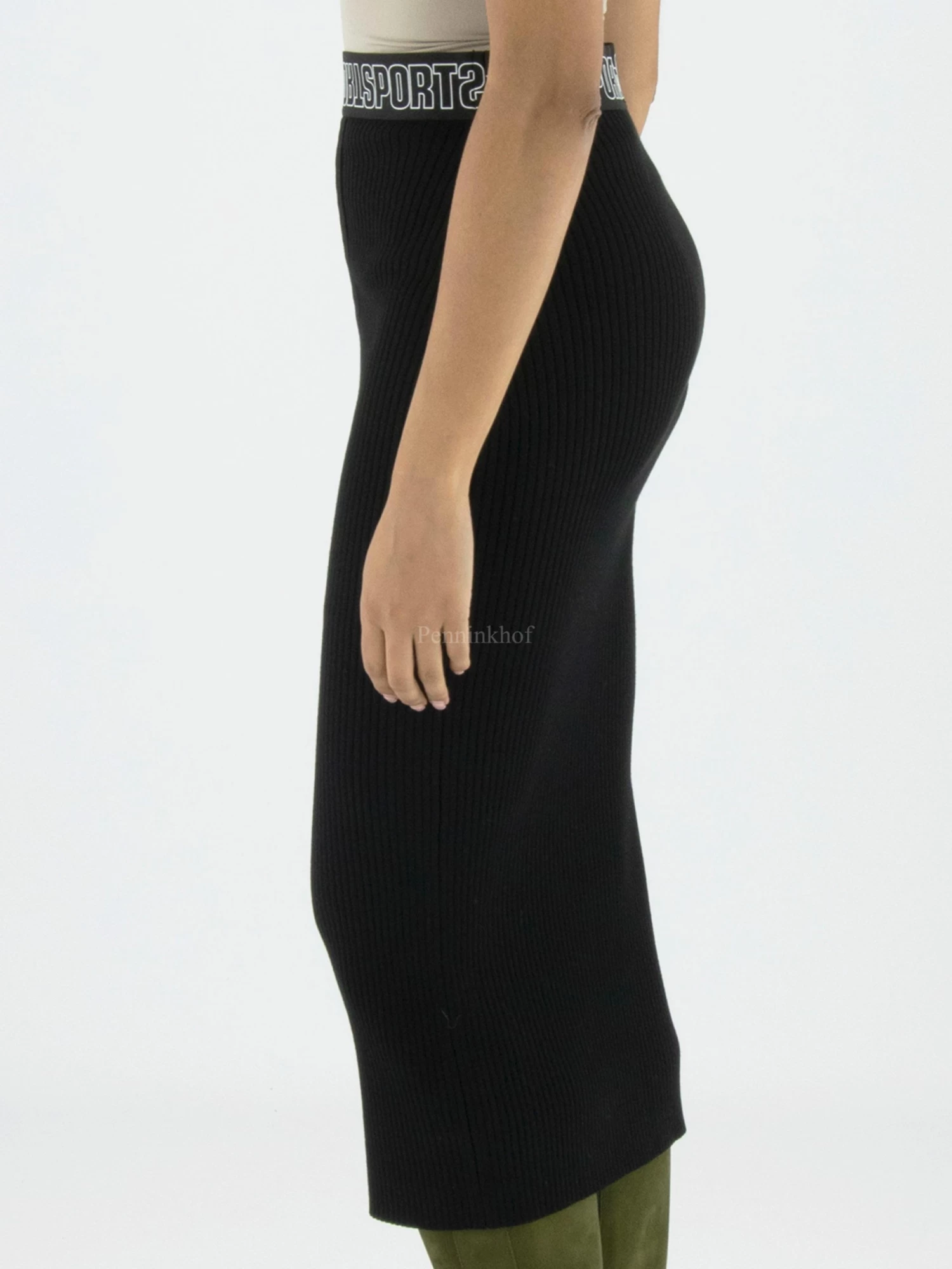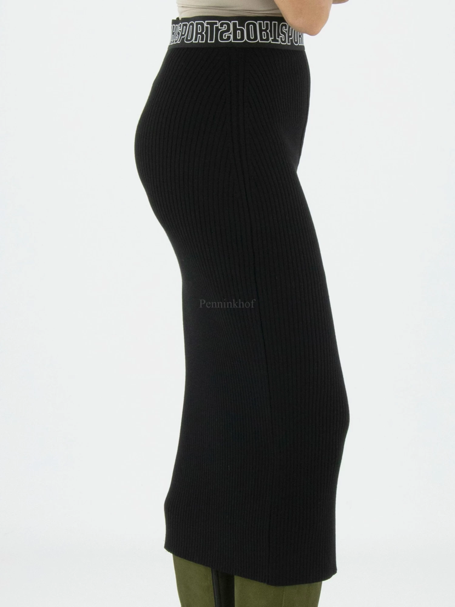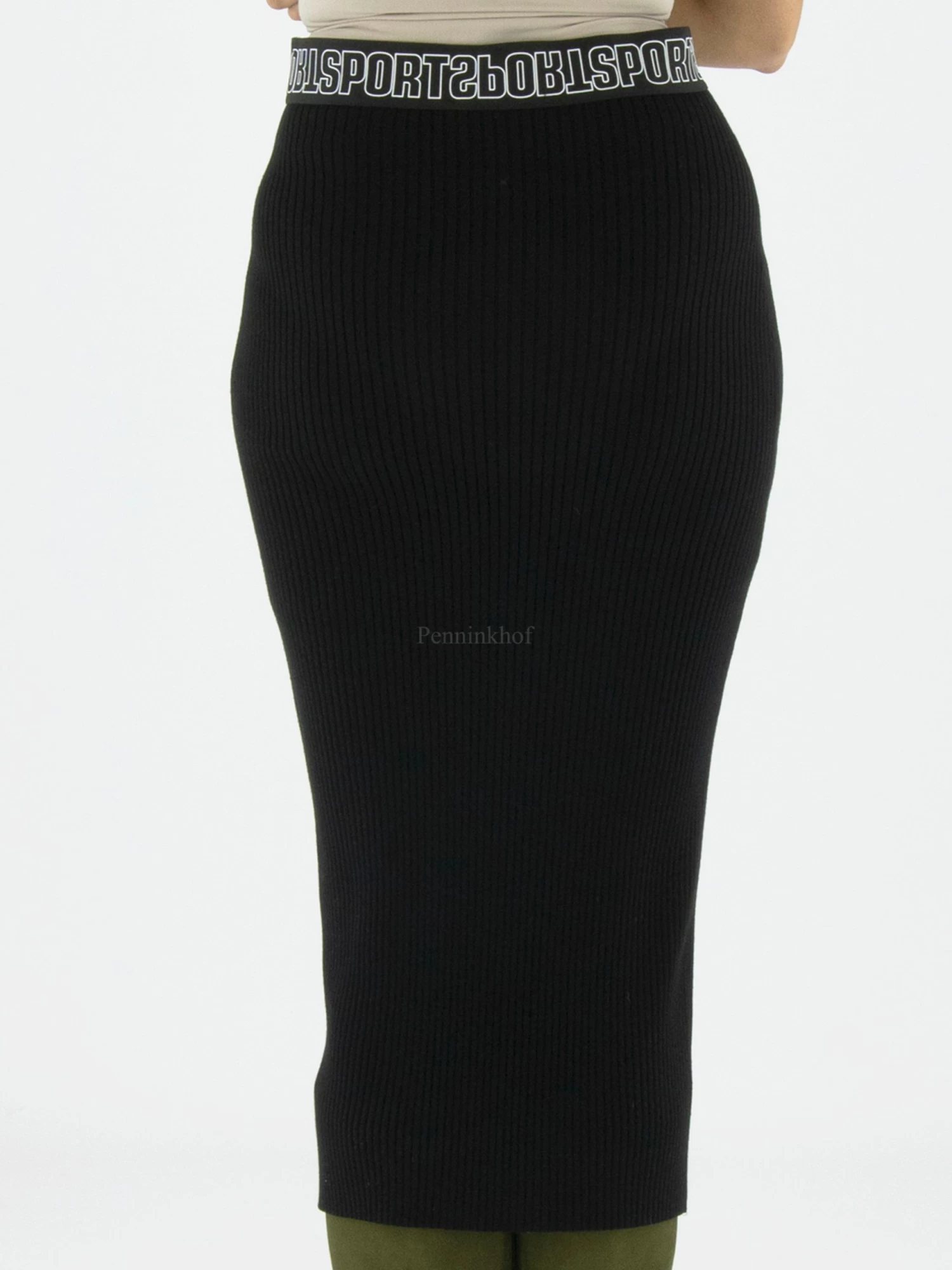 Een halflange rok van Marc Cain in de kleur zwart. In de taille is een elastieken band. De stof is geribbeld en de rok is half gevoerd. Deze rok mag op 30 graden worden gewassen.