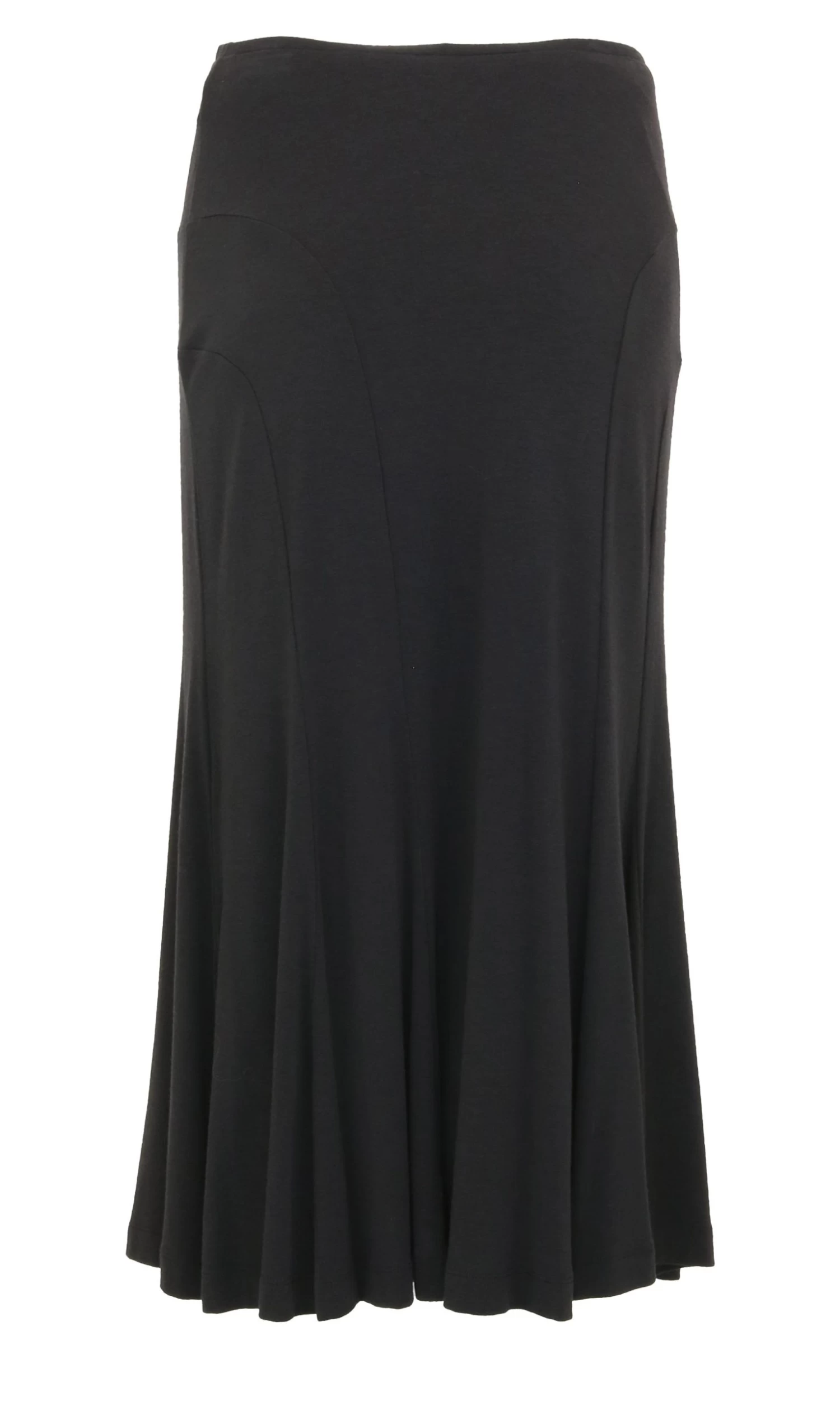 Een lange tricot rok van Orwell in een diep donker bruine kleur. De rok loopt wijd uit en is gevoerd. deze rok mag op de hand worden gewassen.