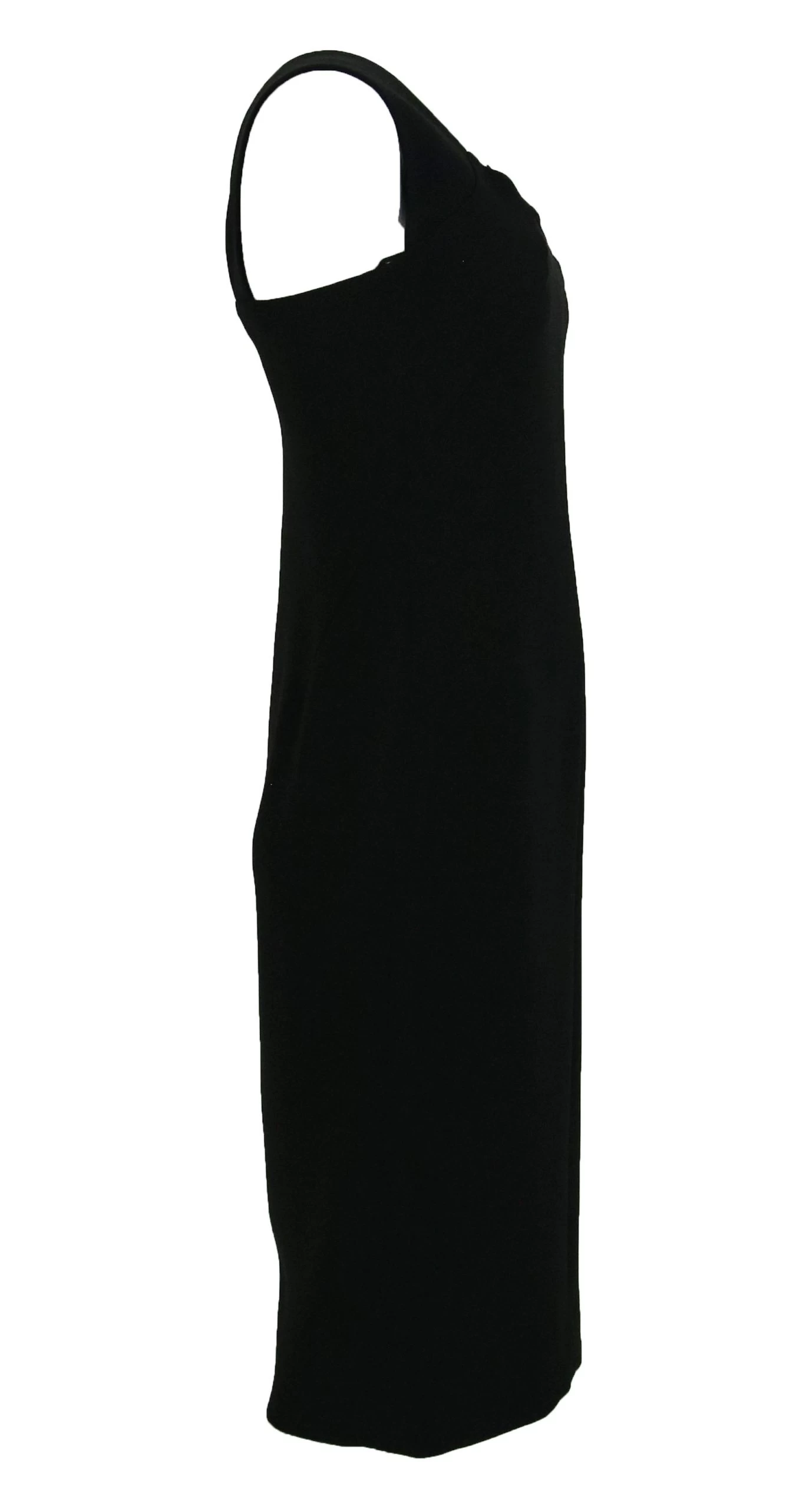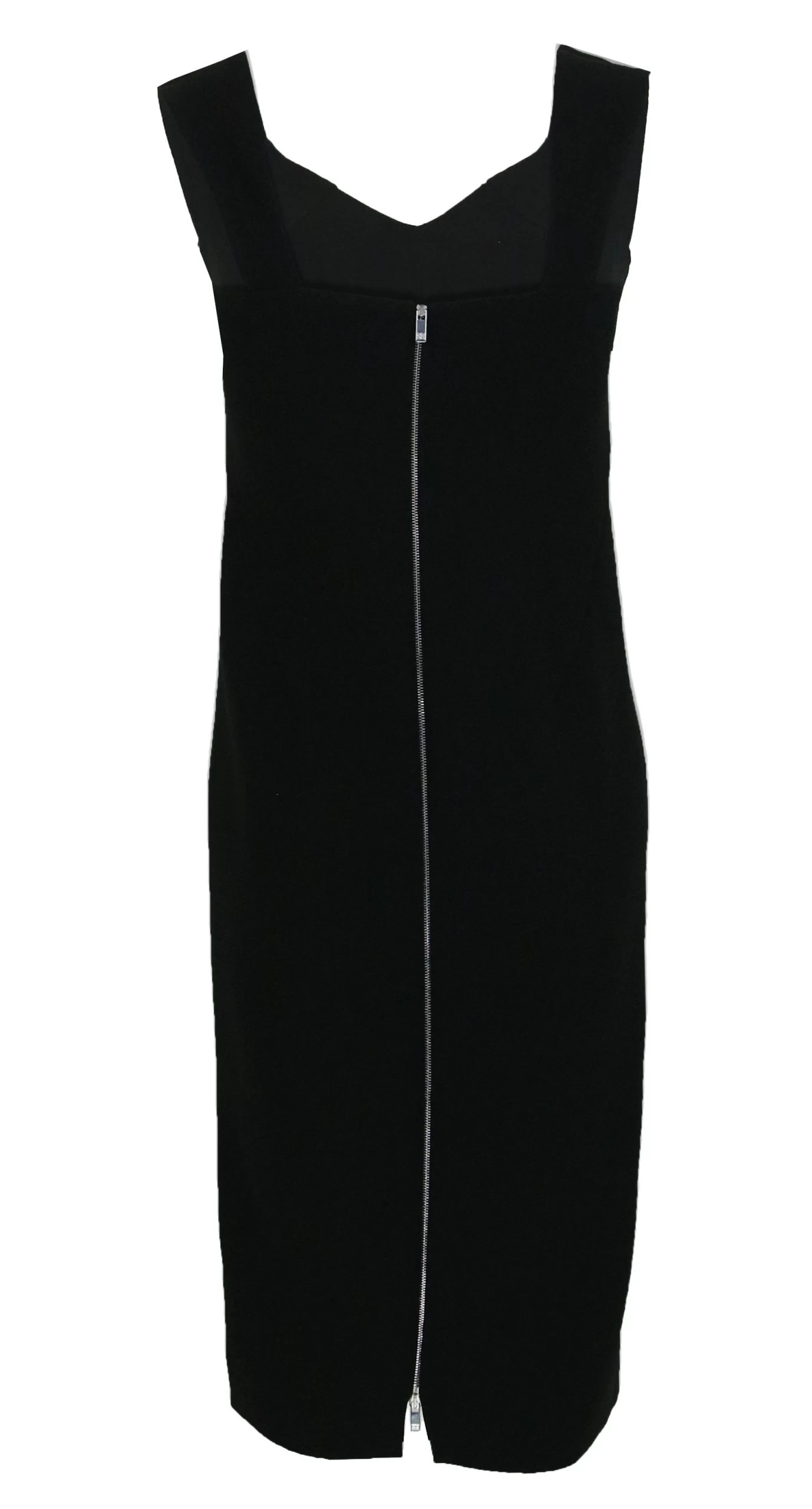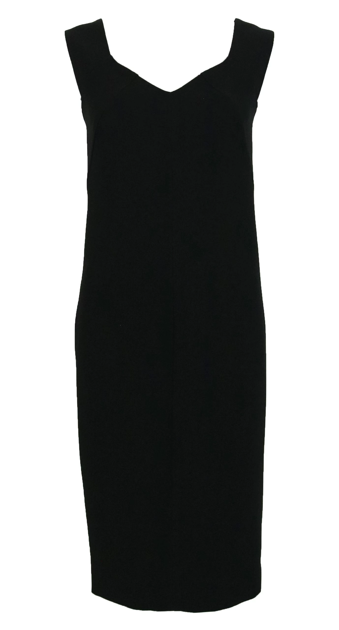 Een jurk van Riani in de kleur zwart. De schouderbandjes zijn 8 cm breed. Aan de achterzijde is in het midden over de gehele lengte een rits. Deze jurk mag niet worden gewassen.